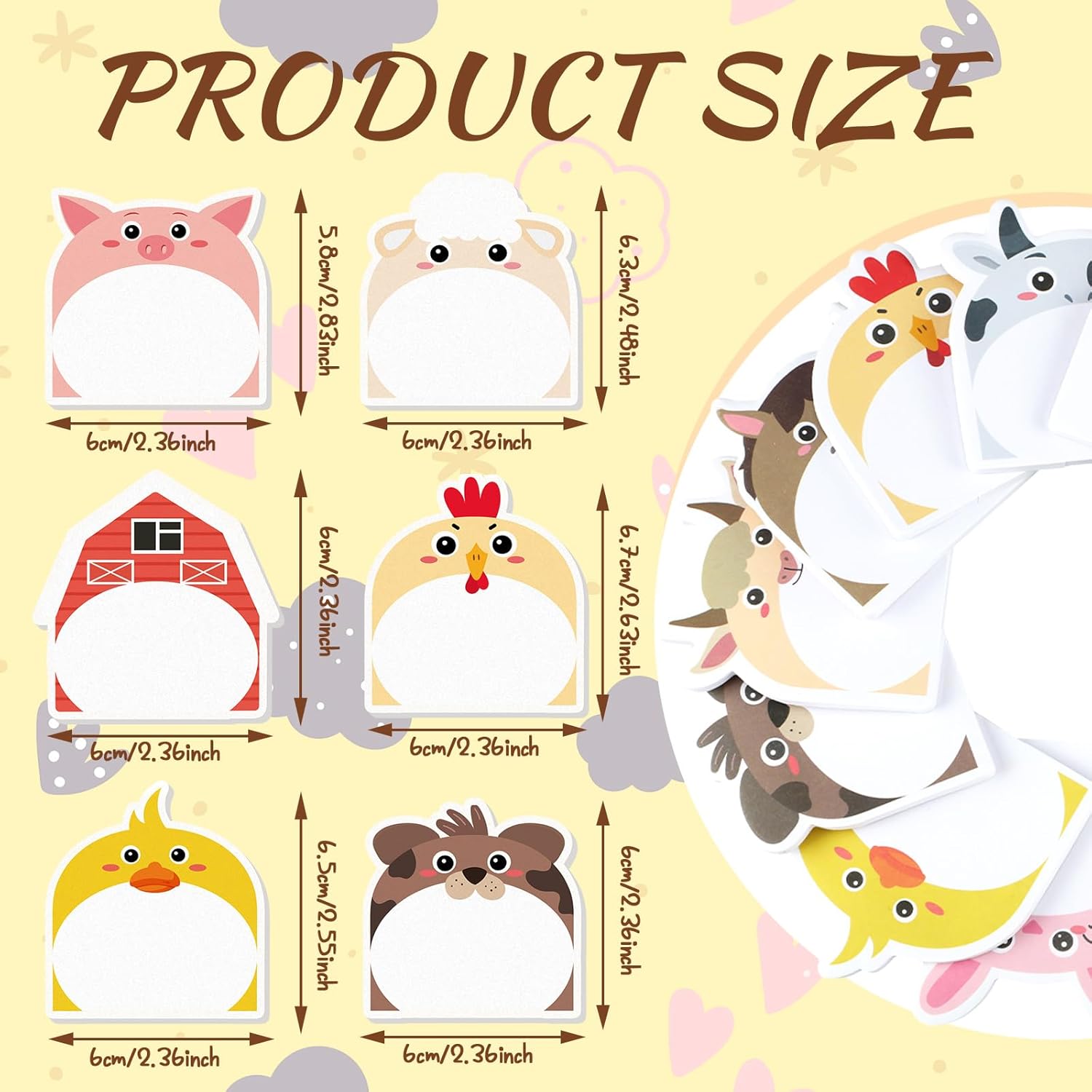Yinder 24 Pads Cute Sticky Notes Fun Kawaii Animal Sticky Notes Pads Bulk Cartoon Memo Self Adhesive Gift for Christmas Veterinary Office School Tab Party Supplies(Farm Animals)