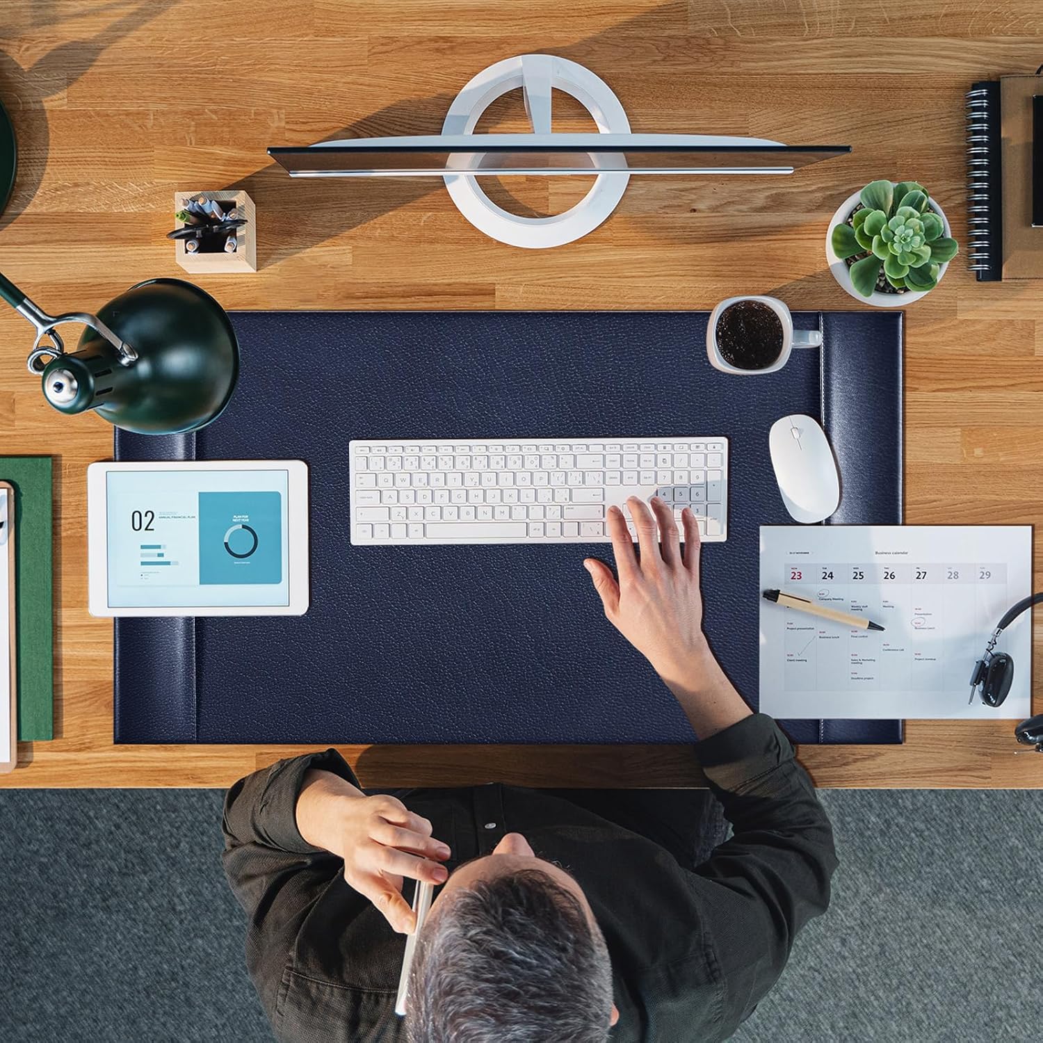 - Luxurious and Sophisticated Design: the elegant and luxurious design of this leather desk pad complements your workspace; The blue bonded leather adds a touch of sophistication to your desk while also providing a smooth and soft writing surface; It's not just a practical desk accessory but also an aesthetic addition that brings professionalism to your environment