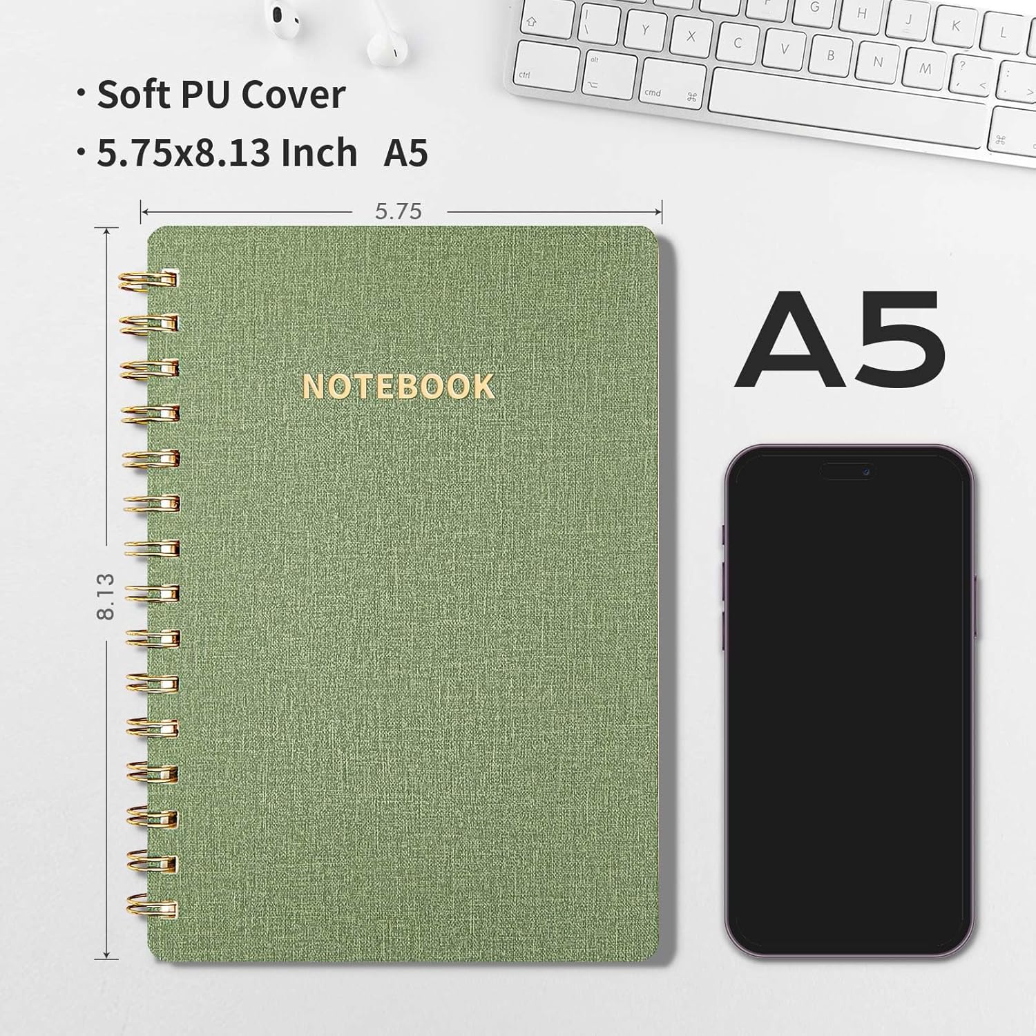 Lined Spiral Notebook College Ruled A5 Journal Book for Note Taking, 160 Pages Writing Journal for Office and Home School Supplies 5.75x8.125 inch - ArmyGreen
