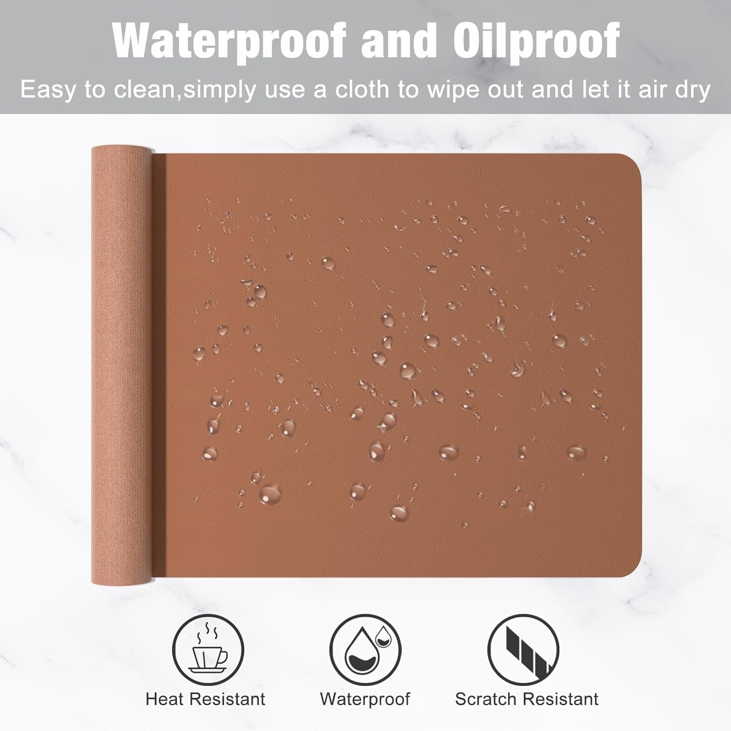 - Non-slip Base & Waterproof Surface: Suede material used for the back side for slip resistance. Synthetic leather used for the upper use side, waterproof, oilproof and anti-fray. Deskpad is easy to clean with a wipe and features great locking-color effect