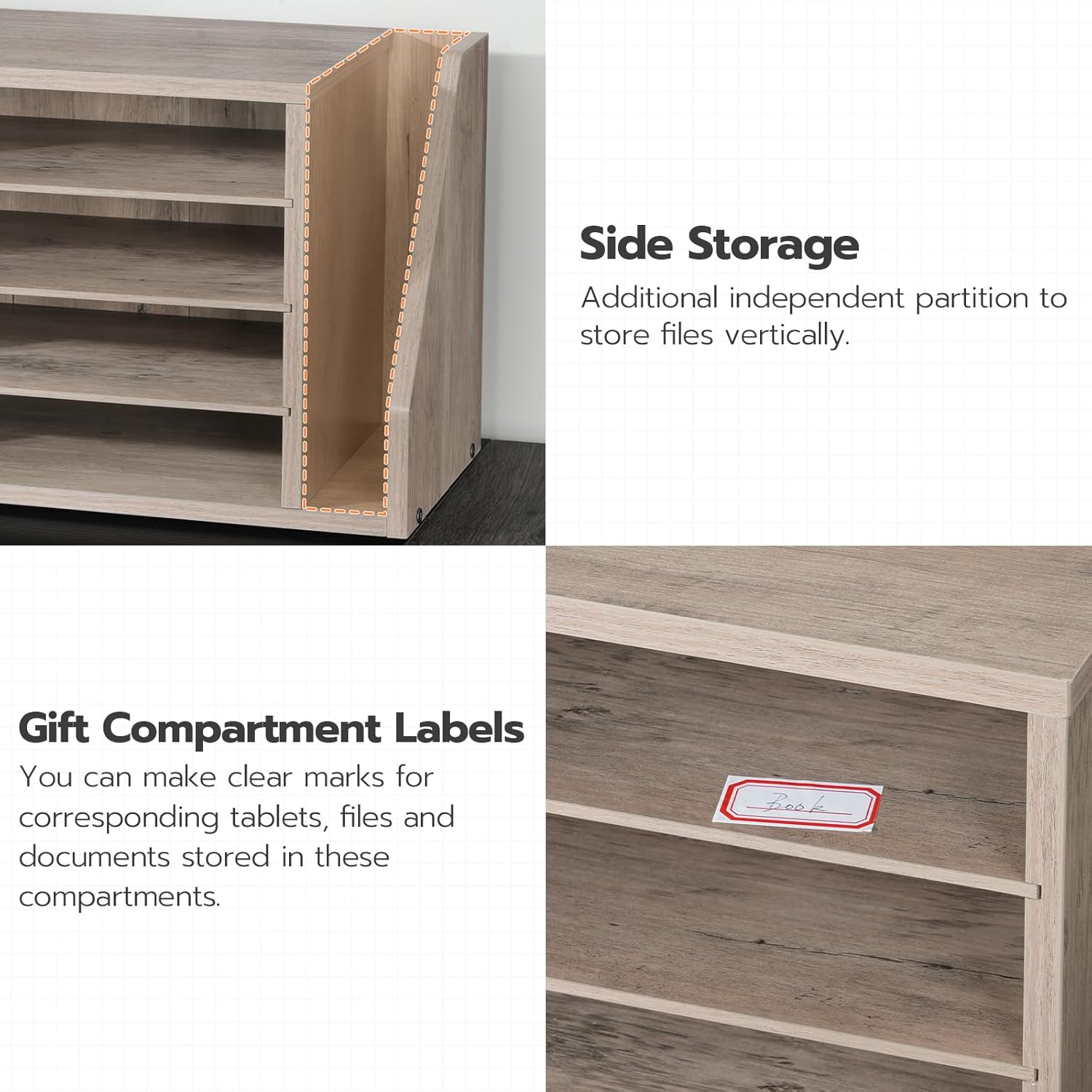 HOOBRO Mail Sorter, Literature Organizer with Adjustable Shelves, Paper Organizer for Office, Home, Wood Countertop Mail Sorter, File Holders, Magazines, Greige BG41WF01N1