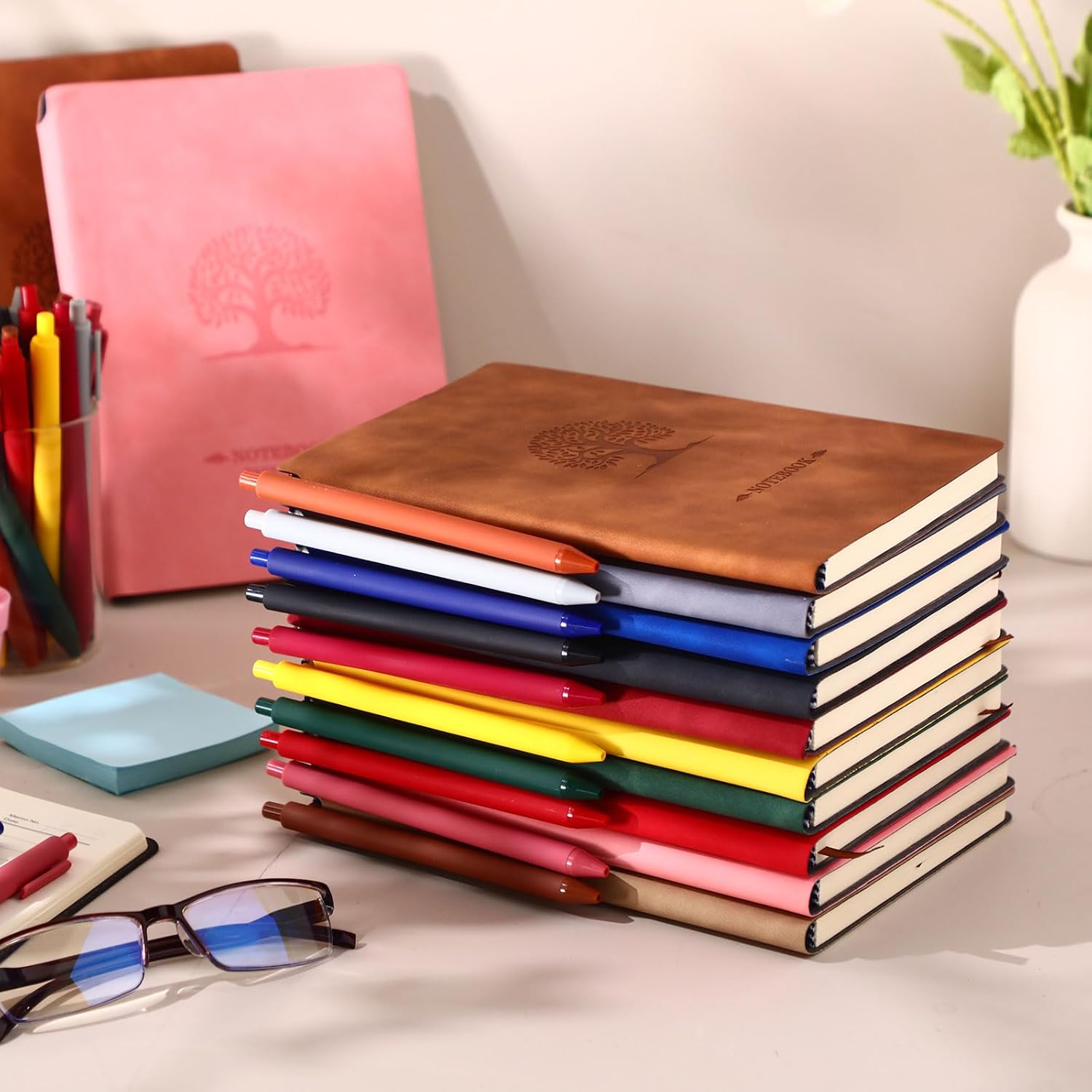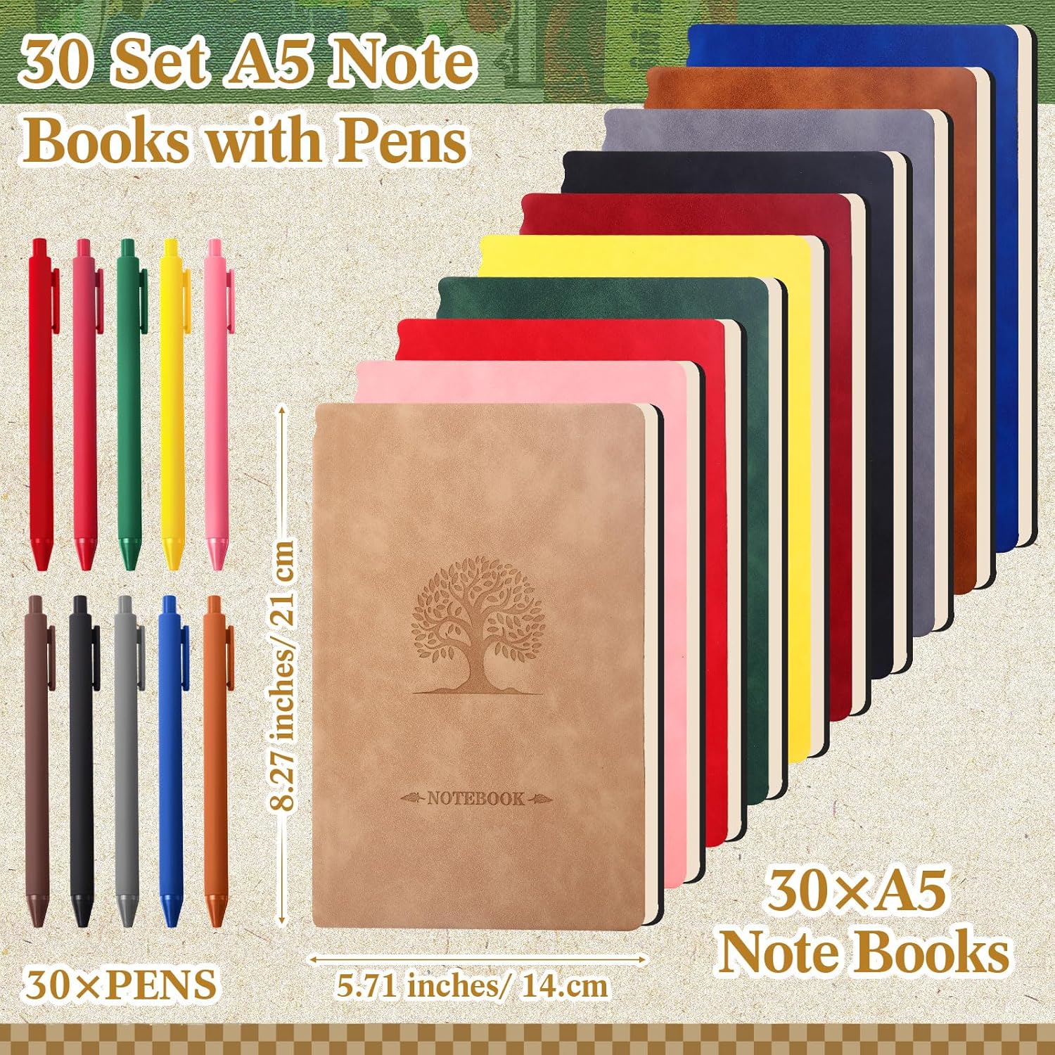 Jetec 30 Pack Notebooks Journals with 30 Pens, Bulk A5 Softcover Leather Notepad Journal with Pen for School Business Work Writing, 200 Pages(Mixed Color, Tree)