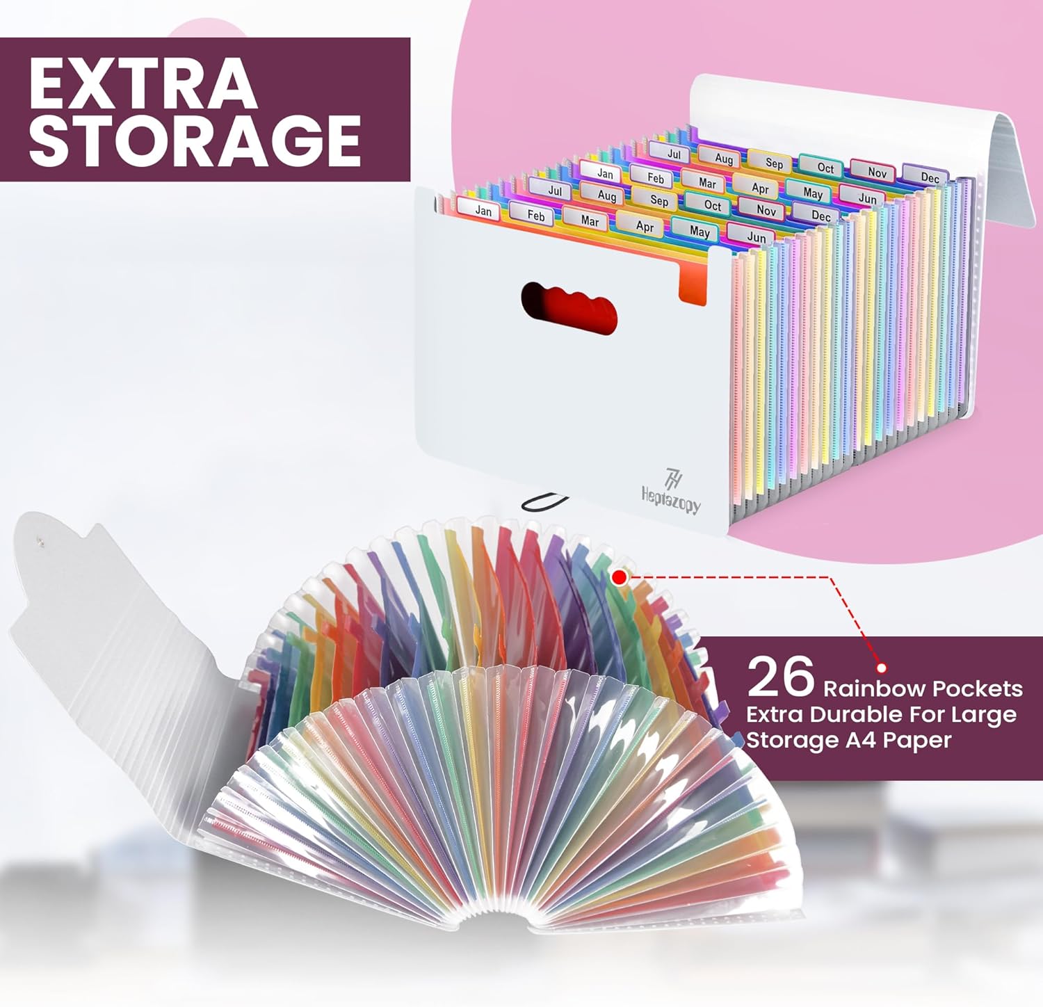 • Colorful & Easy Organization: Our accordion folder organizer Keep your documents accessible and neatly sorted with the rainbow-colored accordion binder, featuring spacious tabs for handwritten labels, great as an expanding file organizer for school and office.