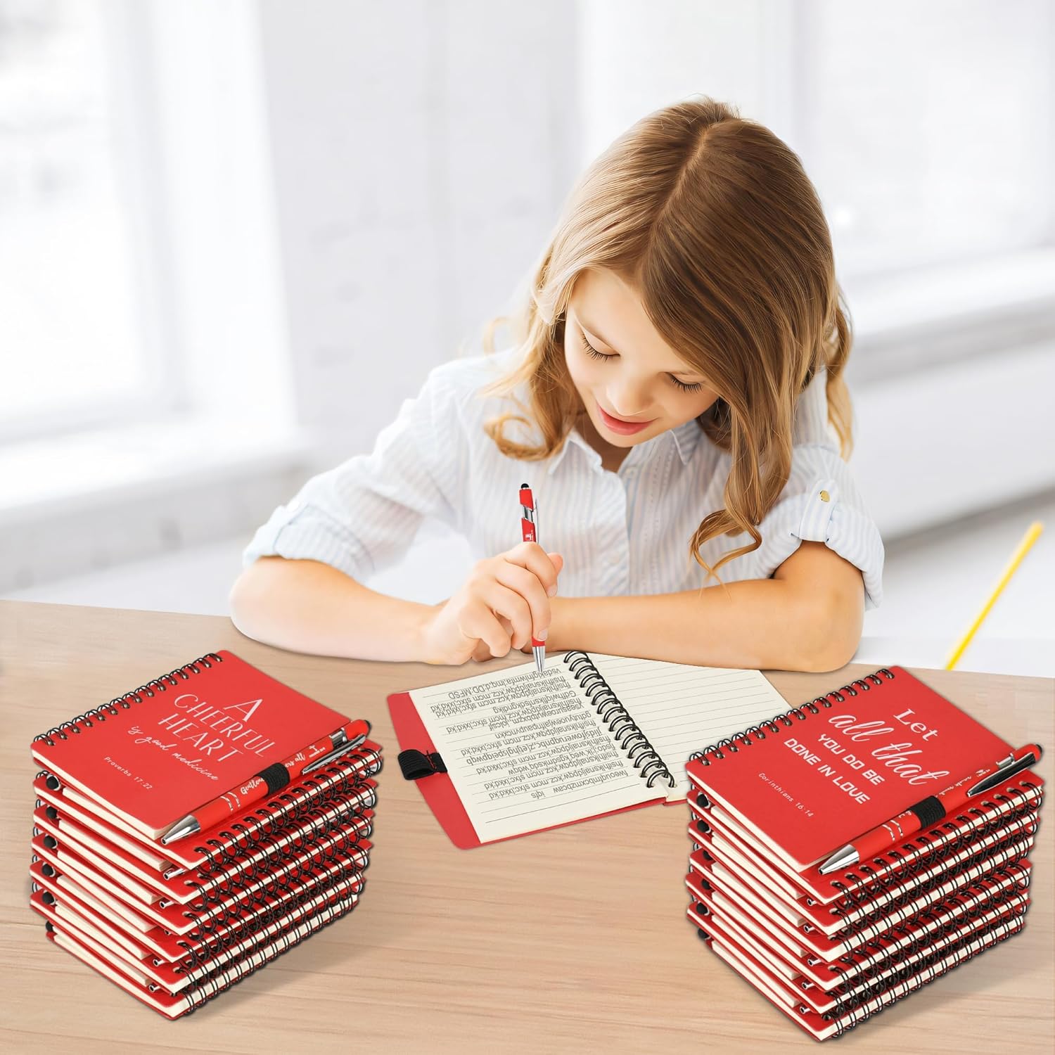 INSADA Christian Prayer Journal Spiral Red Notebooks Bulk with Pens- Small Notepads (4.13”x5.43”) - Christmas Gifts for women, Church Members & Bible Study Groups (30 Sets Red)