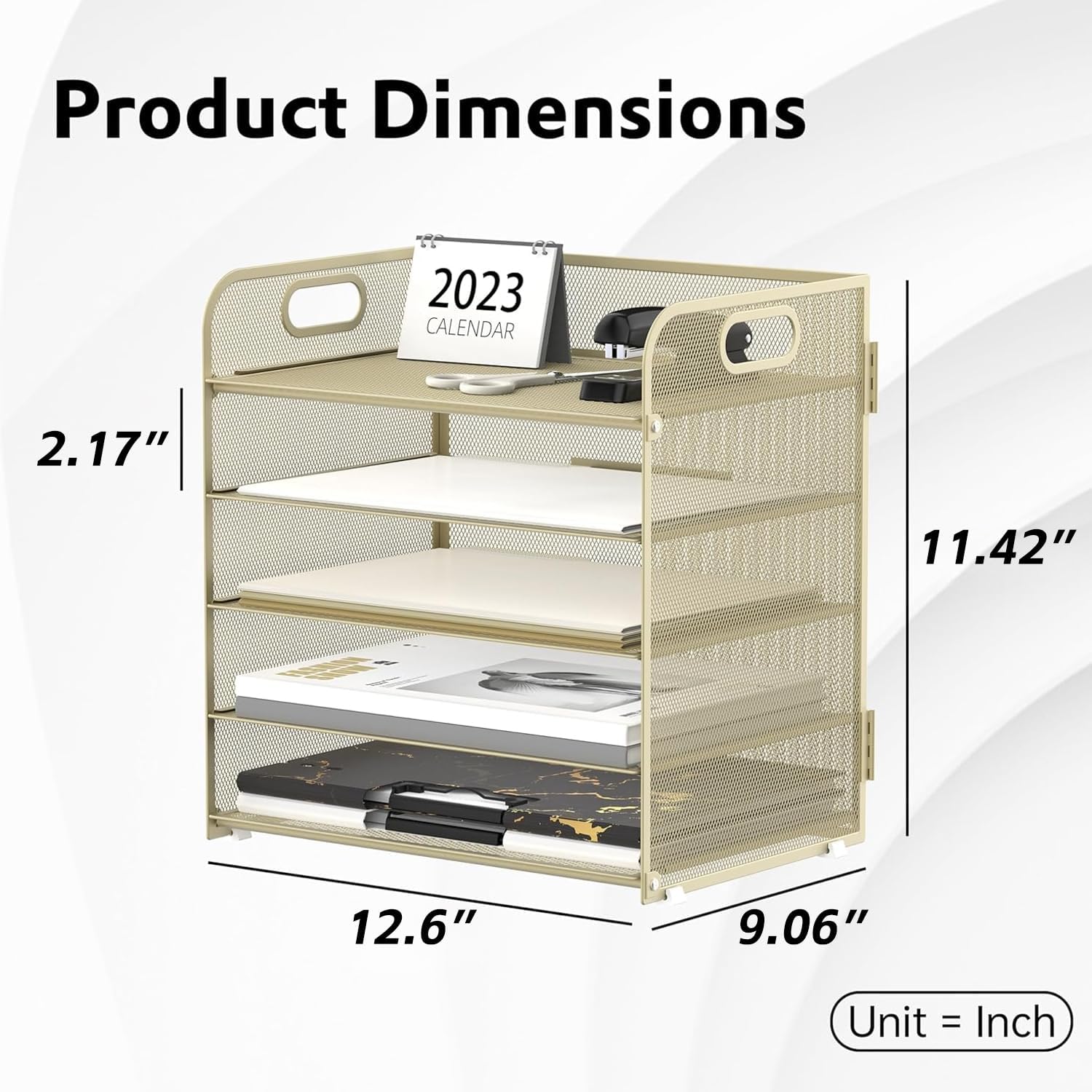Supeasy 5 Trays Paper Organizer Letter Tray with Handle-Mesh Desk File Organizer,Pink Paper Sorter Desk Organizer for Office, Home or School (Gold Yellow)