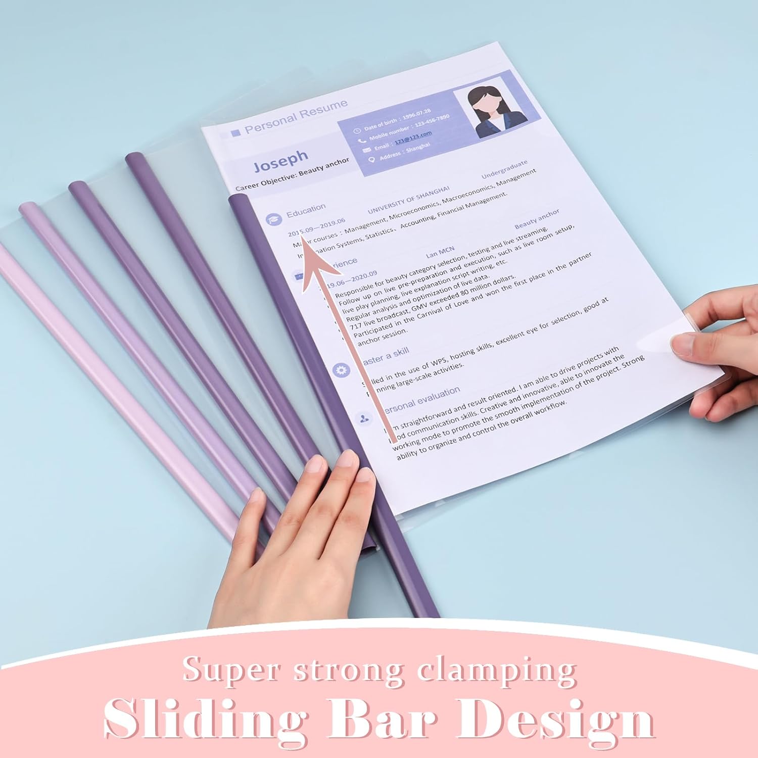 - Package Includes: A set of 10 clear report covers with gradient color sliders. The sliding bar colors are purple, blue and green, beautiful gradient colors add elegance and artistry to your study and work