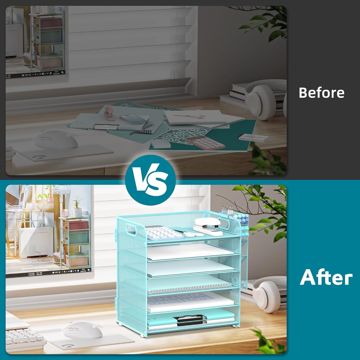 - [Mesh Steel Construction] The mesh desk file organizer is made of lightweight sturdy metal mesh and reinforced with a solid steel frame that makes our desk tray have long-lasting strength and reliable performance. Equipped with 4 non-slip feet, 6 tier document organizer is hard to be twisted, and its bearing capacity is strong.