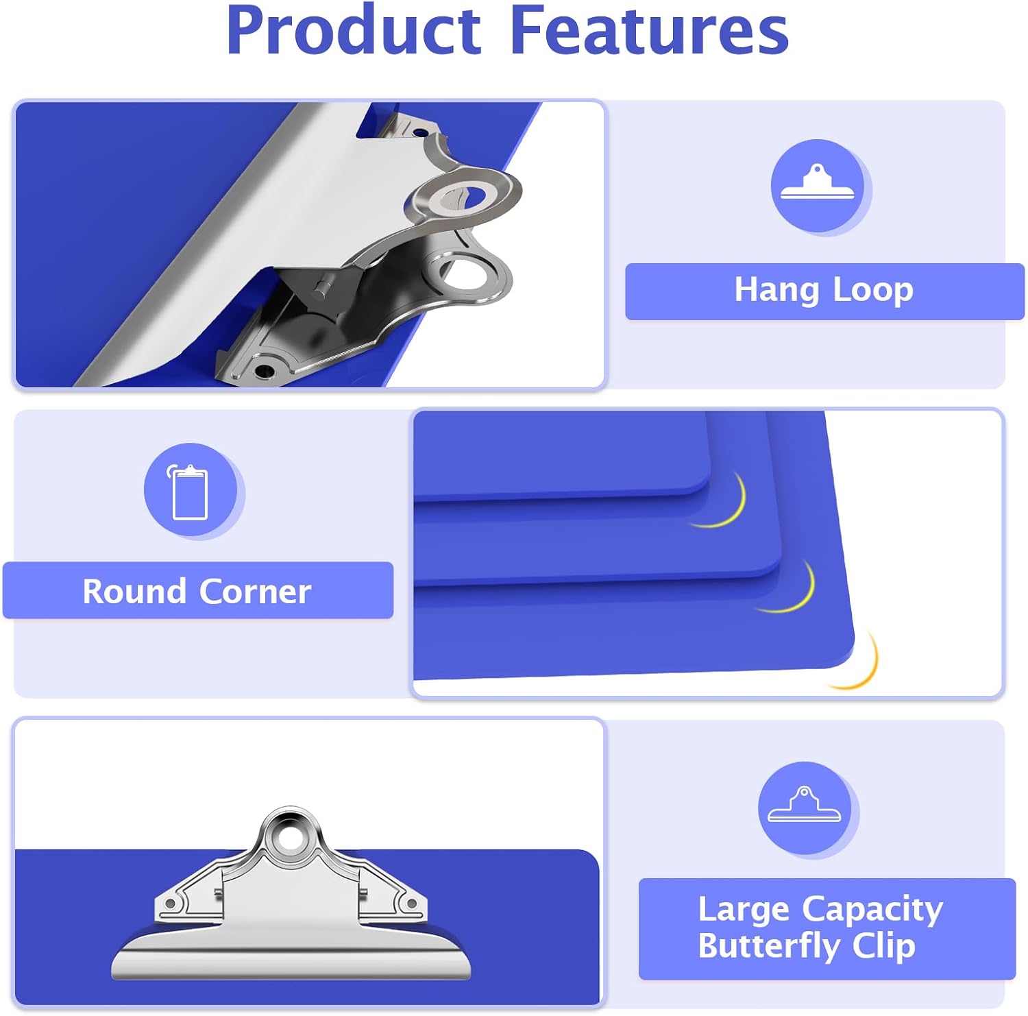 - Heavy Duty Clip: The legal Clipboard use heavy duty Butterfly clip. And Sturdy metal clip to hold up to 120 legal size pages easily and securely in place. Designed hanging loop, easy to hang it on a wall