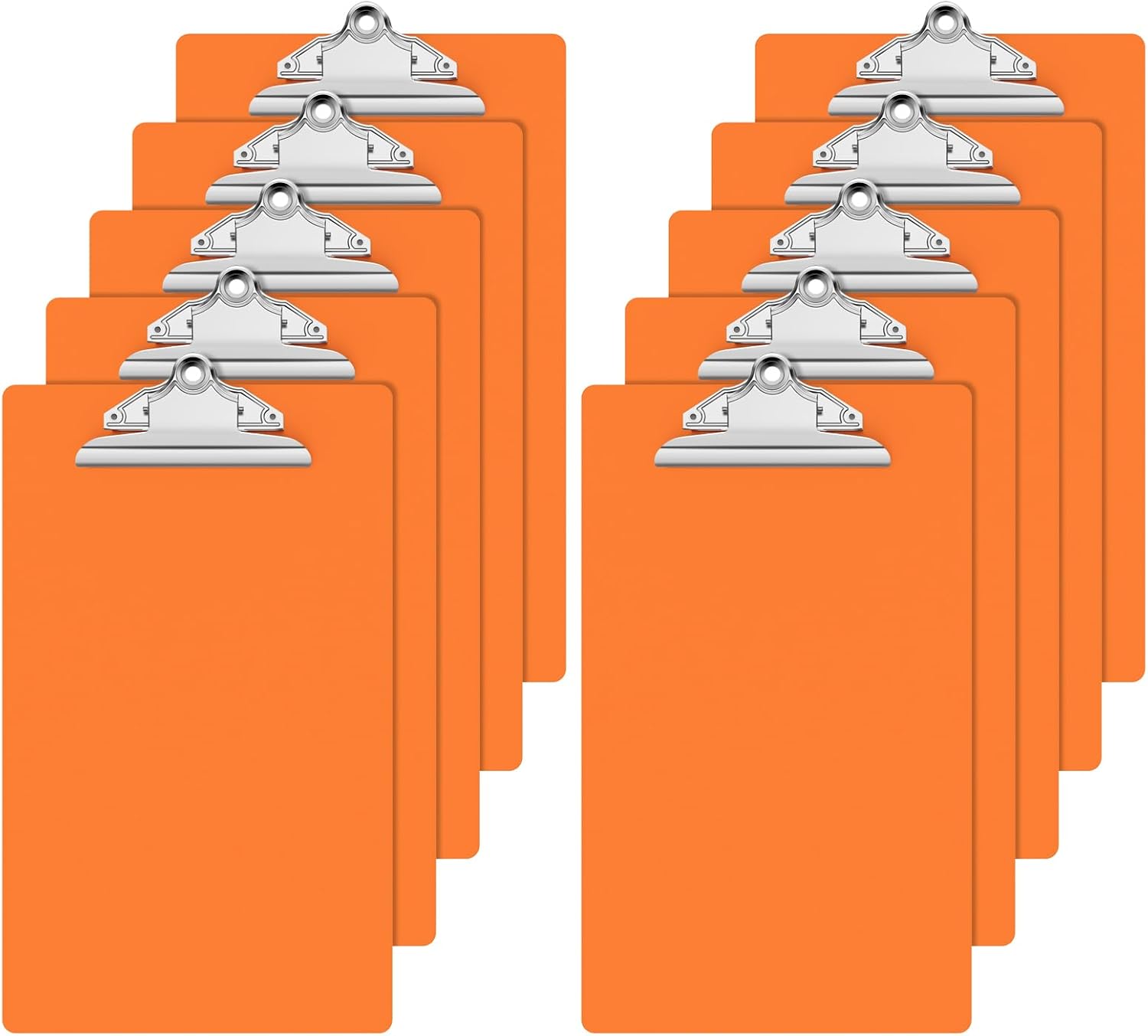 Legal Size Clipboard, Orange Plastic 8.5 x 14 Clip Board for Lawers, Heavy Duty Butterfly Clip, 9 x 15 in, Office & School Supply(Pack of 10)