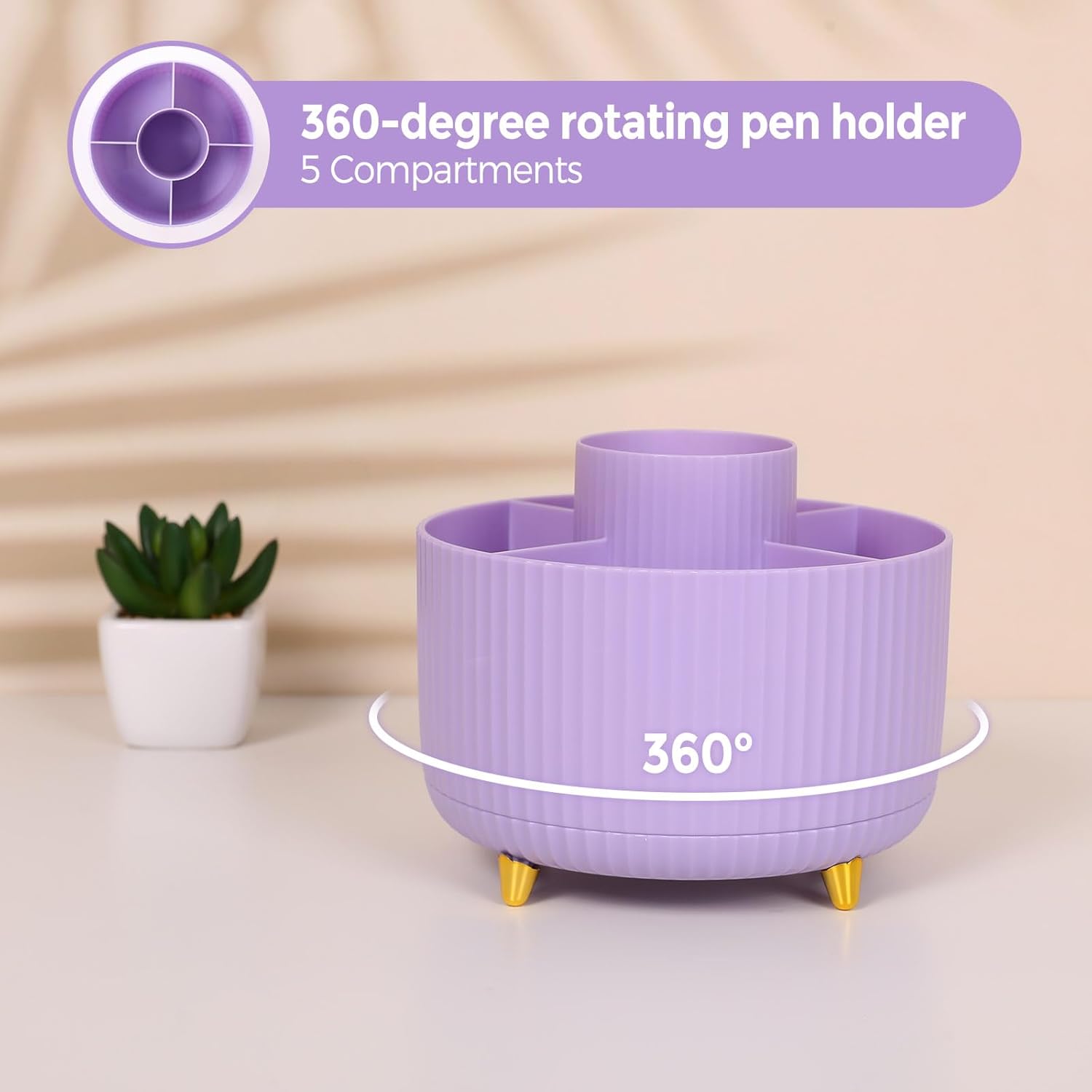 • Aesthetic and Practical Design: The office supplies sets are designed to be both elegant and functional. They enhance the aesthetics of the workspace with their stylish designs and colors, Unique designs 360-degree rotating pen holders keeping the desk tidy and organize