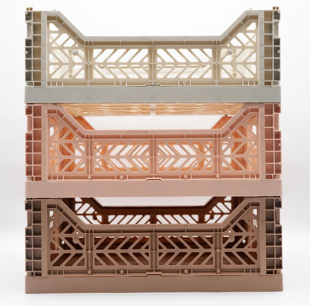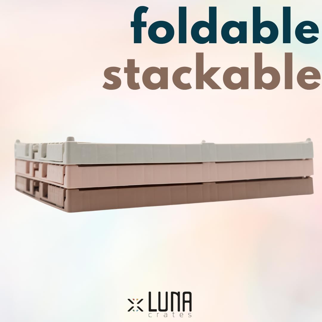 - Compact & Stackable: These crates are designed to stack easily, allowing you to maximize your storage space. When not in use, they fold down flat, taking up only 20% of their original space.