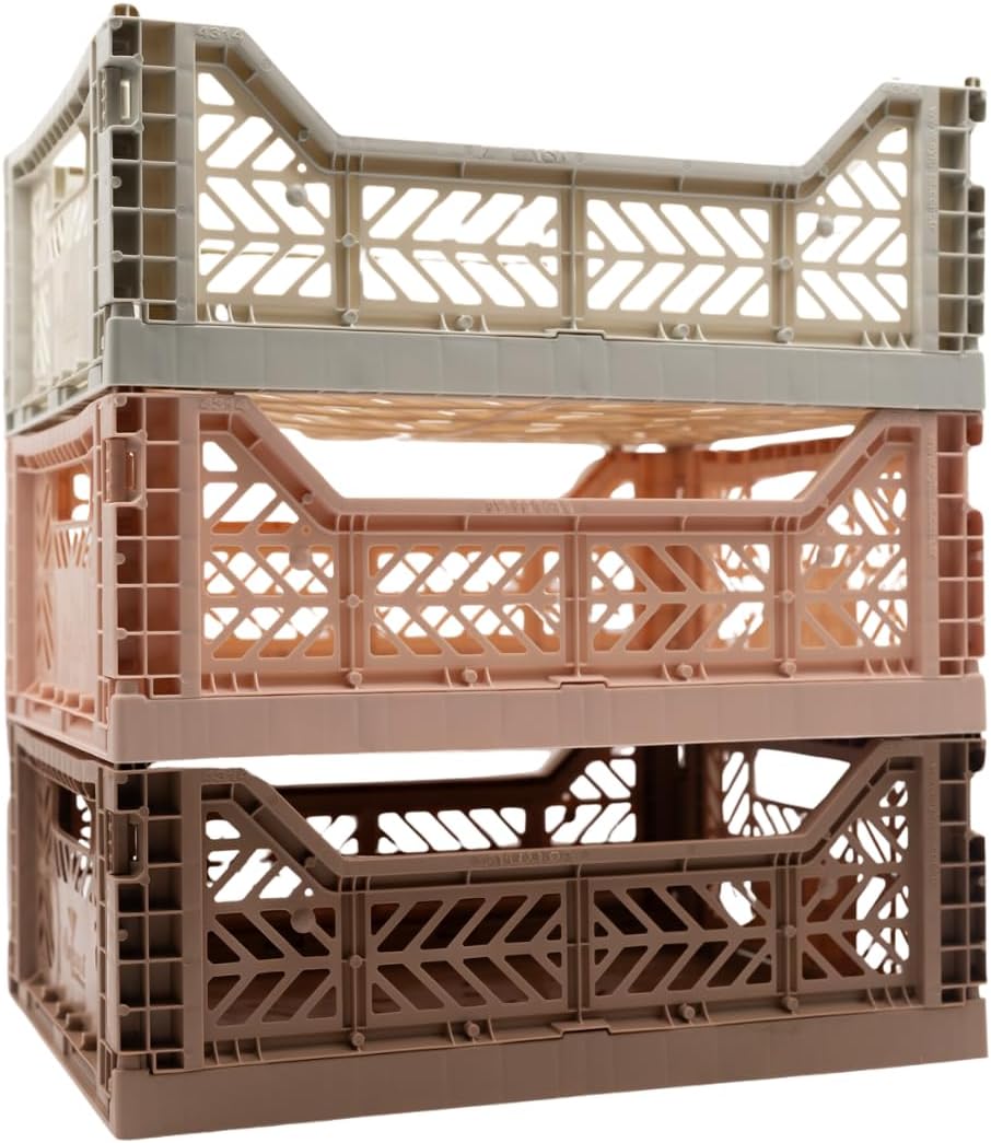 Collapsible Storage Box, Foldable Crate Organizer Bin with Handle, Stackable Crates for Home Organization (Peach-Brown-LightGray, 14L - 3 Pack)