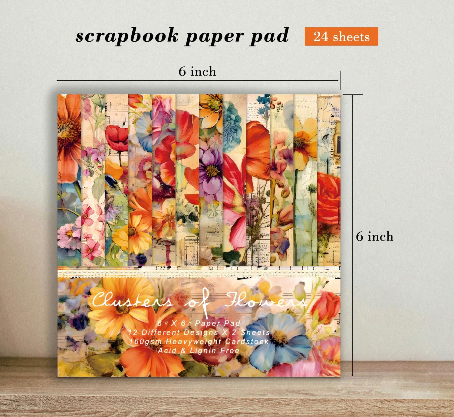 - ★VALUE SET - The flowers scrapbook paper pad collection includes 12 different patterns, 2 sheets for each pattern. The size is 6in x 6in(15.24cm x 15.24cm). The unique aesthetics design of colorful patterns is suitable for making cards and DIY projects, meeting your different artistic and decorative needs.