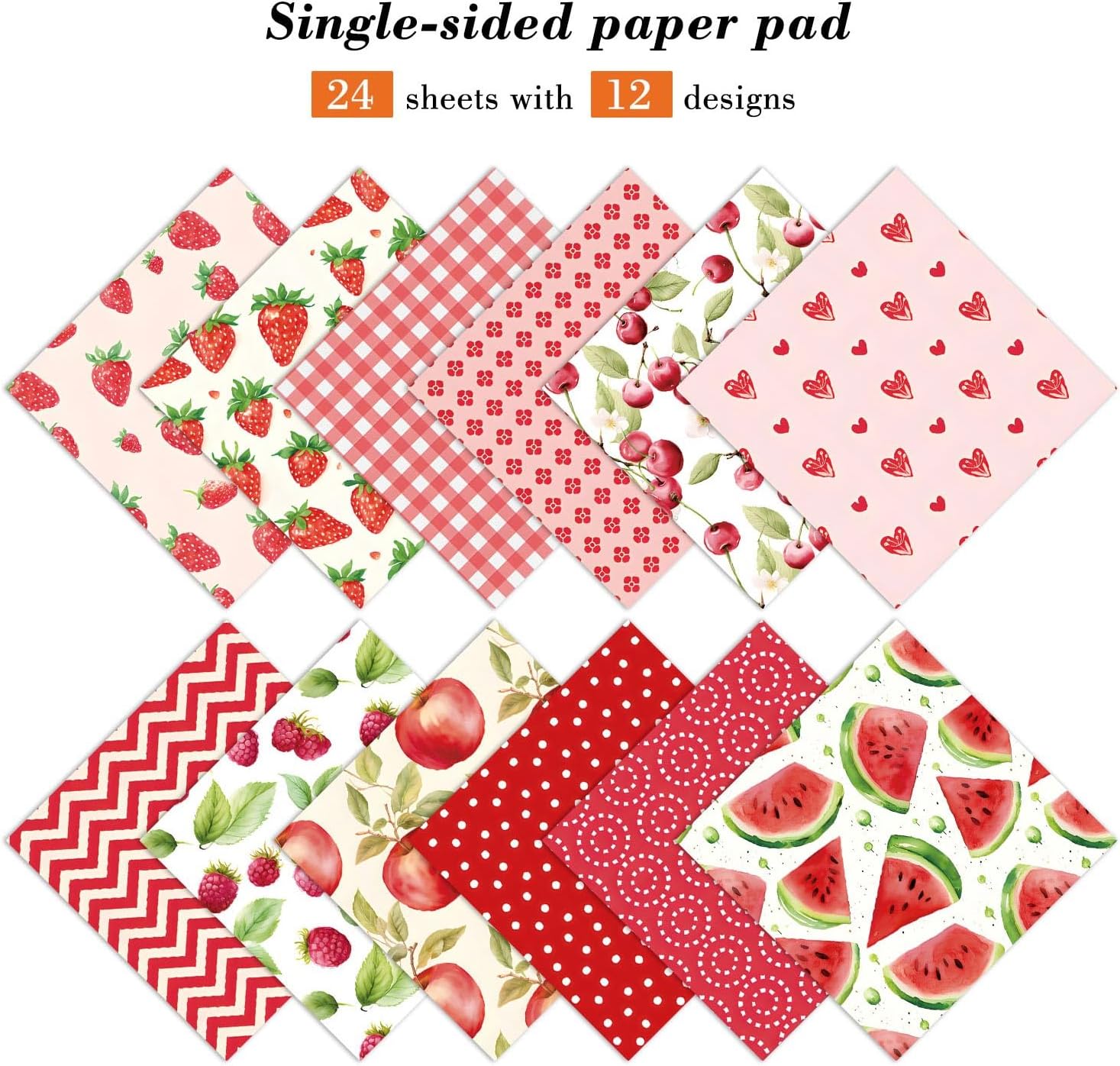 Fruit Scrapbook Paper Pad, 24 Sheets 6 x6 Inch Red Patterned Designed Decorative Decoupage for Card Making Folded Card Supplies Gift Wrapping Planners Journals DIY Crafts Photo Album