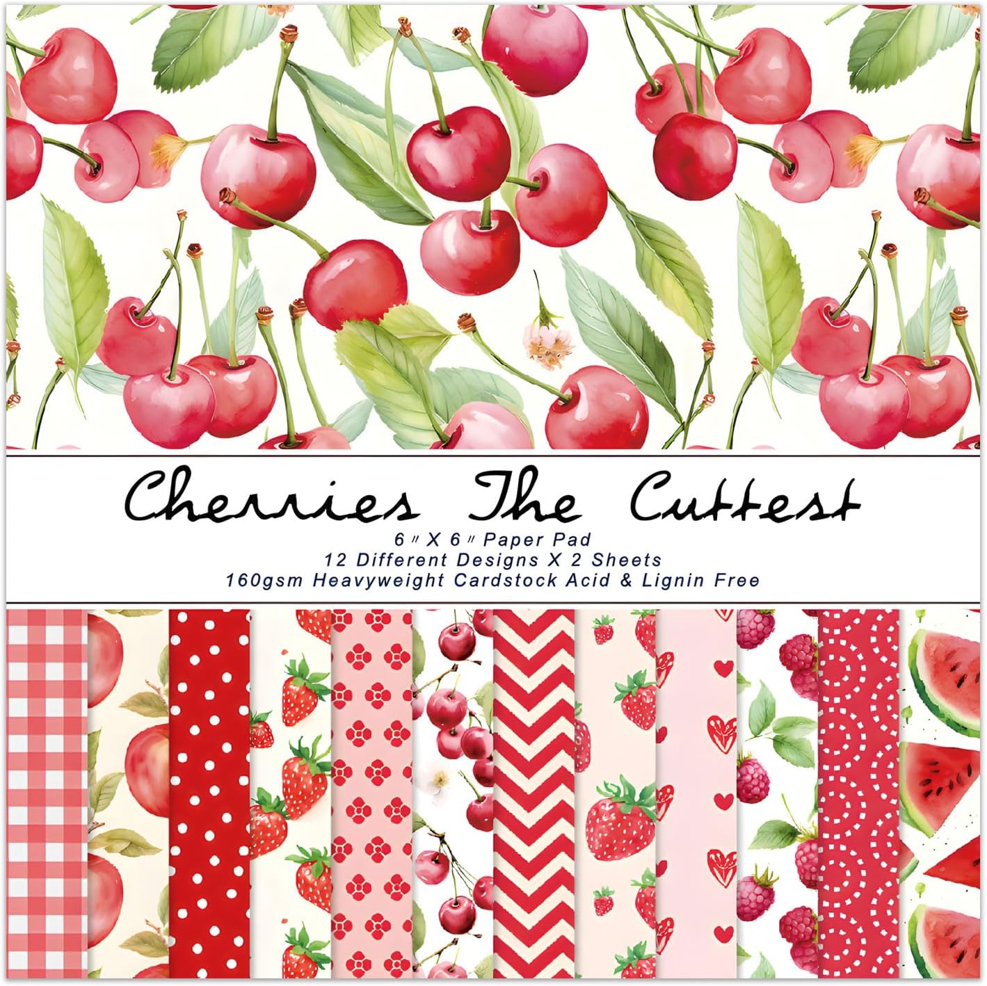 - ★VALUE SET - The cherry strawberry scrapbook paper pad collection includes 12 different patterns, 2 sheets for each pattern. The size is 6in x 6in(15.24cm x 15.24cm). The unique aesthetics design of colorful patterns is suitable for making cards and DIY projects, meeting your different artistic and decorative needs.