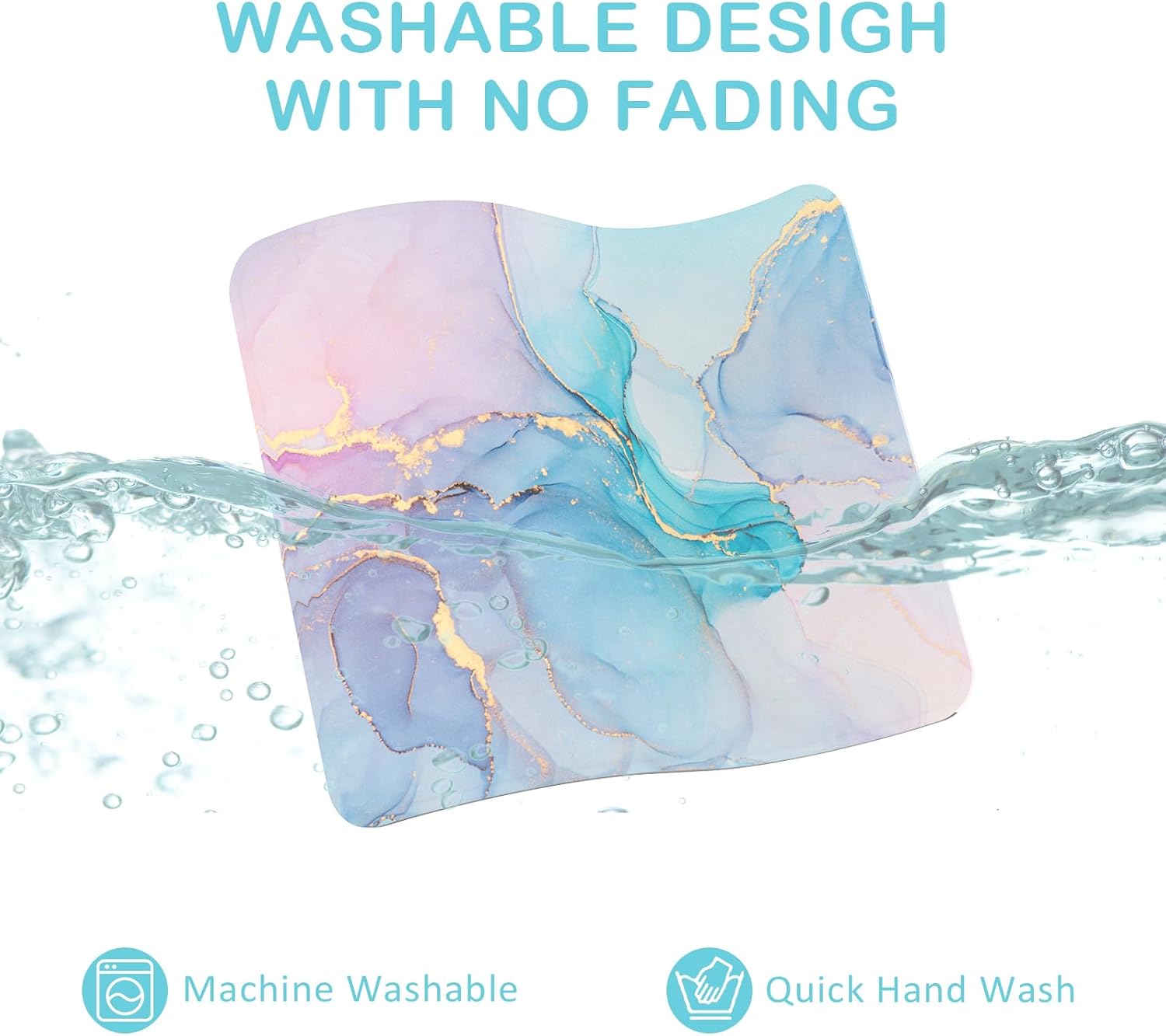 eulps Mouse Pad with Stitched Edge, Multiple Patterns Computer Mouse Pads with Non-Slip Rubber Base, Washable Cloth Mousepad, for Gaming, Laptop, PC (Blue Blush Marble)