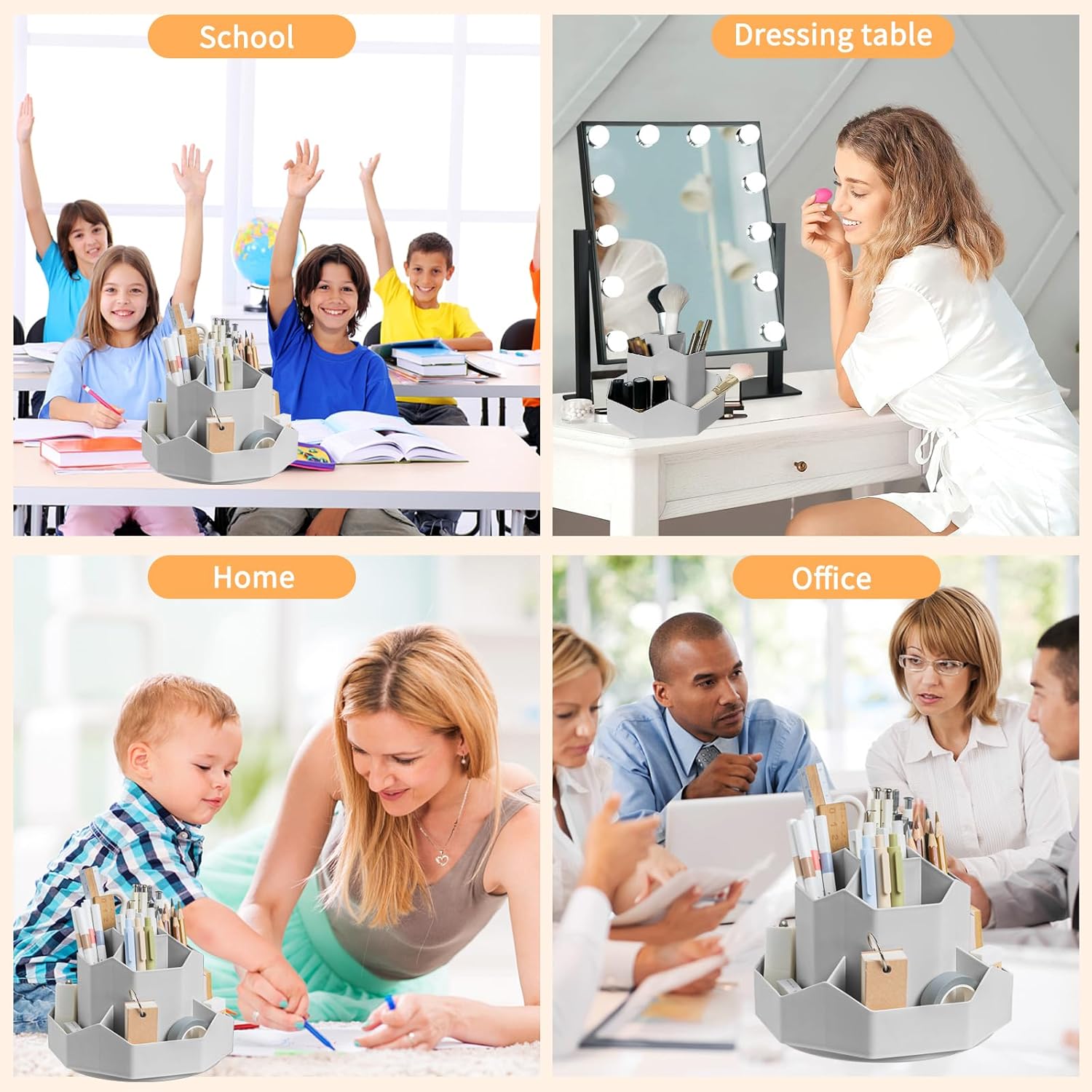 Pencil Pen Holder for Desk,9 Slots 360 Degree Rotating Desk Organizers,Desktop Storage Stationery Supplies Organizer, Cute Pencil Cup Pot For Office, School, Home(Grey)
