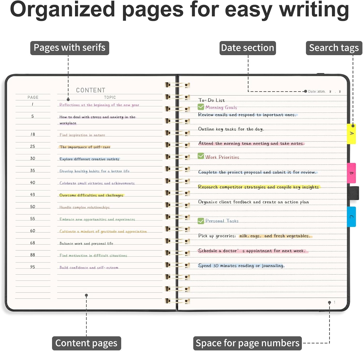 - ORGANIZED AND PRACTICAL NOTEBOOK: Our lined spiral notebook features 140 numbered pages and 4-page blank table of contents. In a large B5 size 7.6" × 10", providing ample writing space while remaining lightweight and easy to carry