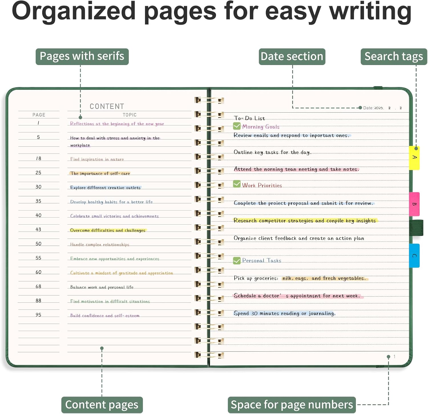 - ORGANIZED AND PRACTICAL NOTEBOOK: Our lined spiral notebook features 140 numbered pages and 4-page blank table of contents. In a large B5 size 7.6" × 10", providing ample writing space while remaining lightweight and easy to carry