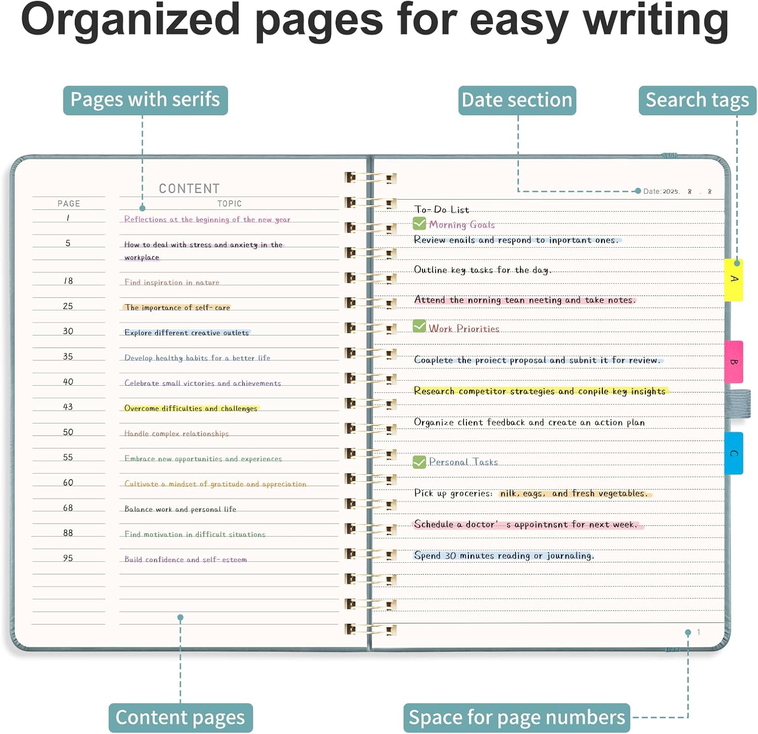 - ORGANIZED AND PRACTICAL NOTEBOOK: Our lined spiral notebook features 140 numbered pages and 4-page blank table of contents. In a large B5 size 7.6" × 10", providing ample writing space while remaining lightweight and easy to carry