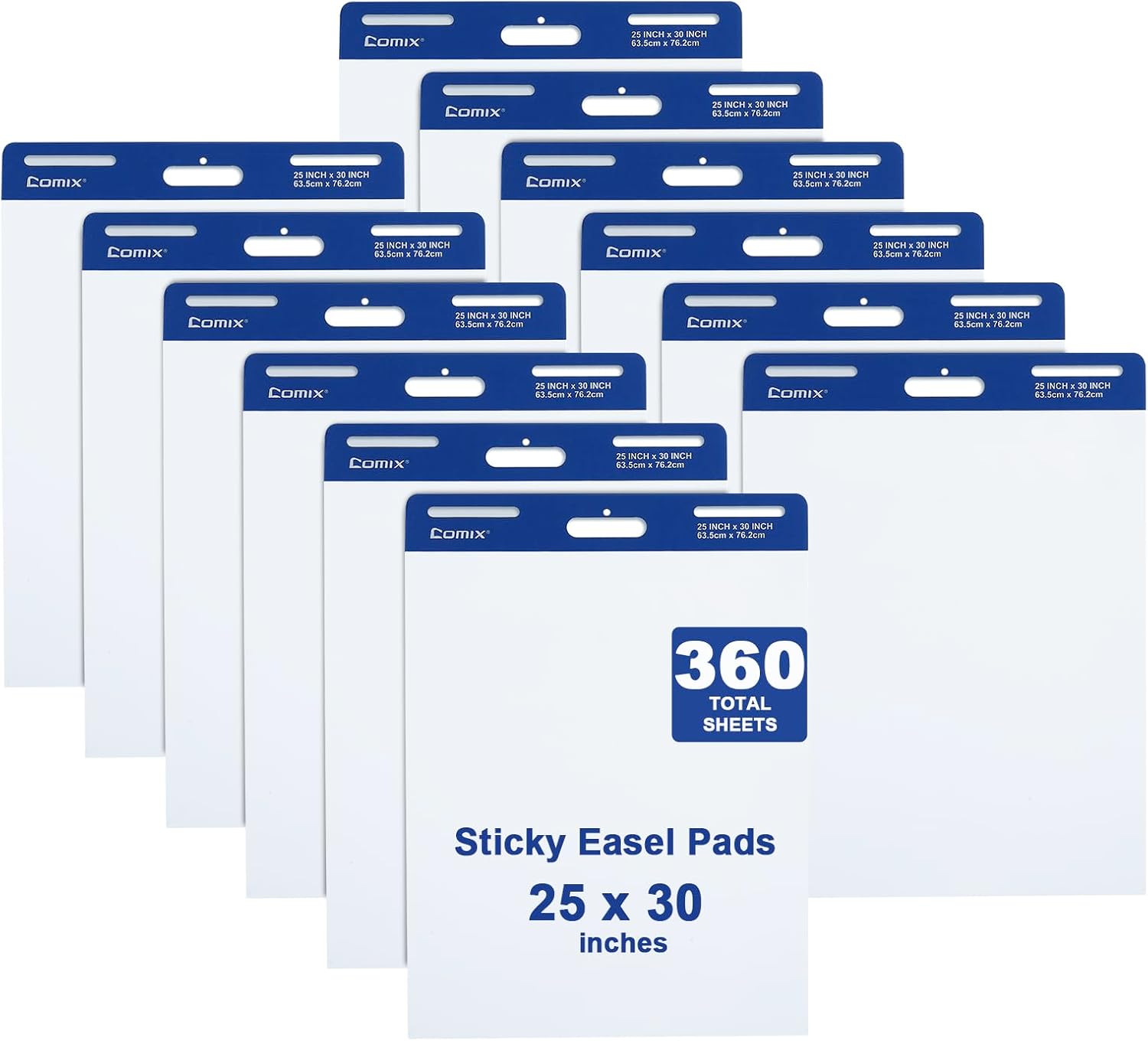 Comix Sticky Easel Pad, 25 x 30 Inches Flip Chart Paper for Teachers, Large Self Stick Easel Paper for Office School Classroom Supplies, 30 Sheets/Pad, 12 Pads/Pack