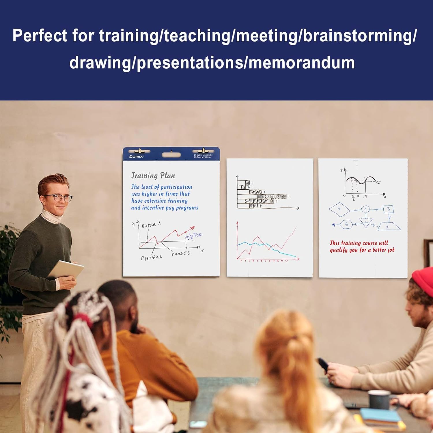 - 【Large Size Chart Paper】 Comix flip chart paper comes in a large size of 25 x 30 inches, 30 Sheets/Pad, 12 Pads/Pack, providing plenty of space for writing and drawing.