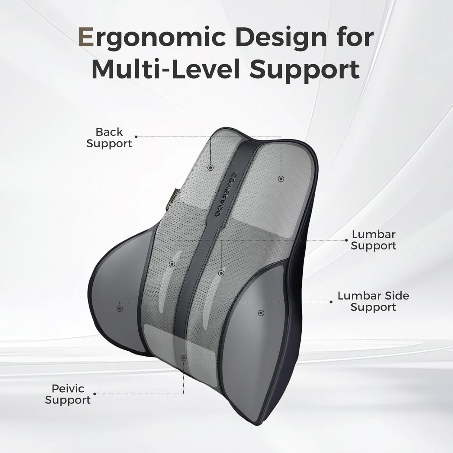 - Ergonomic Design: Our car lumbar support is ergonomically designed to provide the back support that the original car seat lacks, it fills the gap between car seat and your lower back. Once in place, it conforms to the shape of your back, makes sure you are comfortable while you are working or driving, especially perfect for office workers and drivers