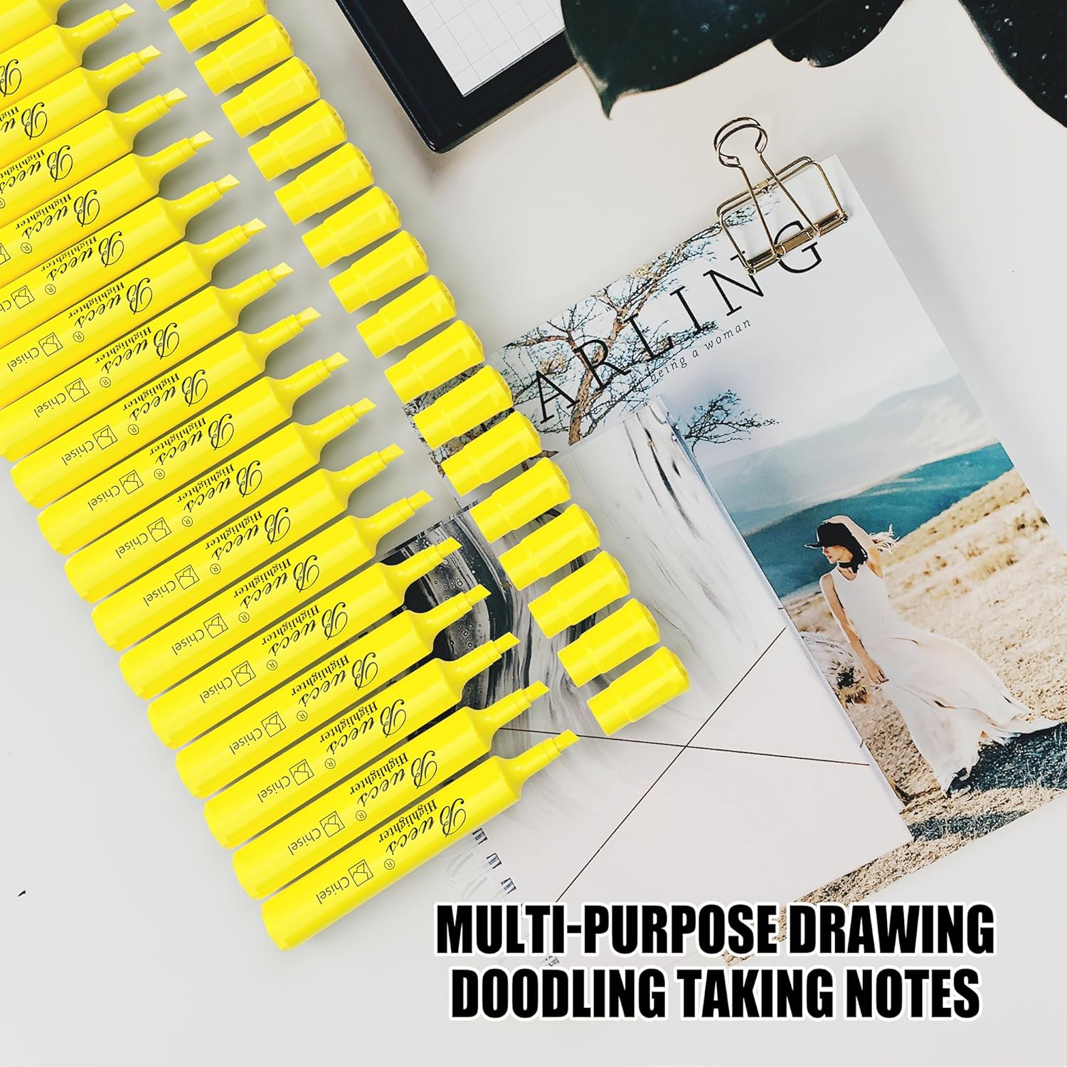 - Yellow highlighter, ink for highlighting text, underlining information, including textbooks, faxes, copies, newspapers and assorted planners, make your text easy to read.