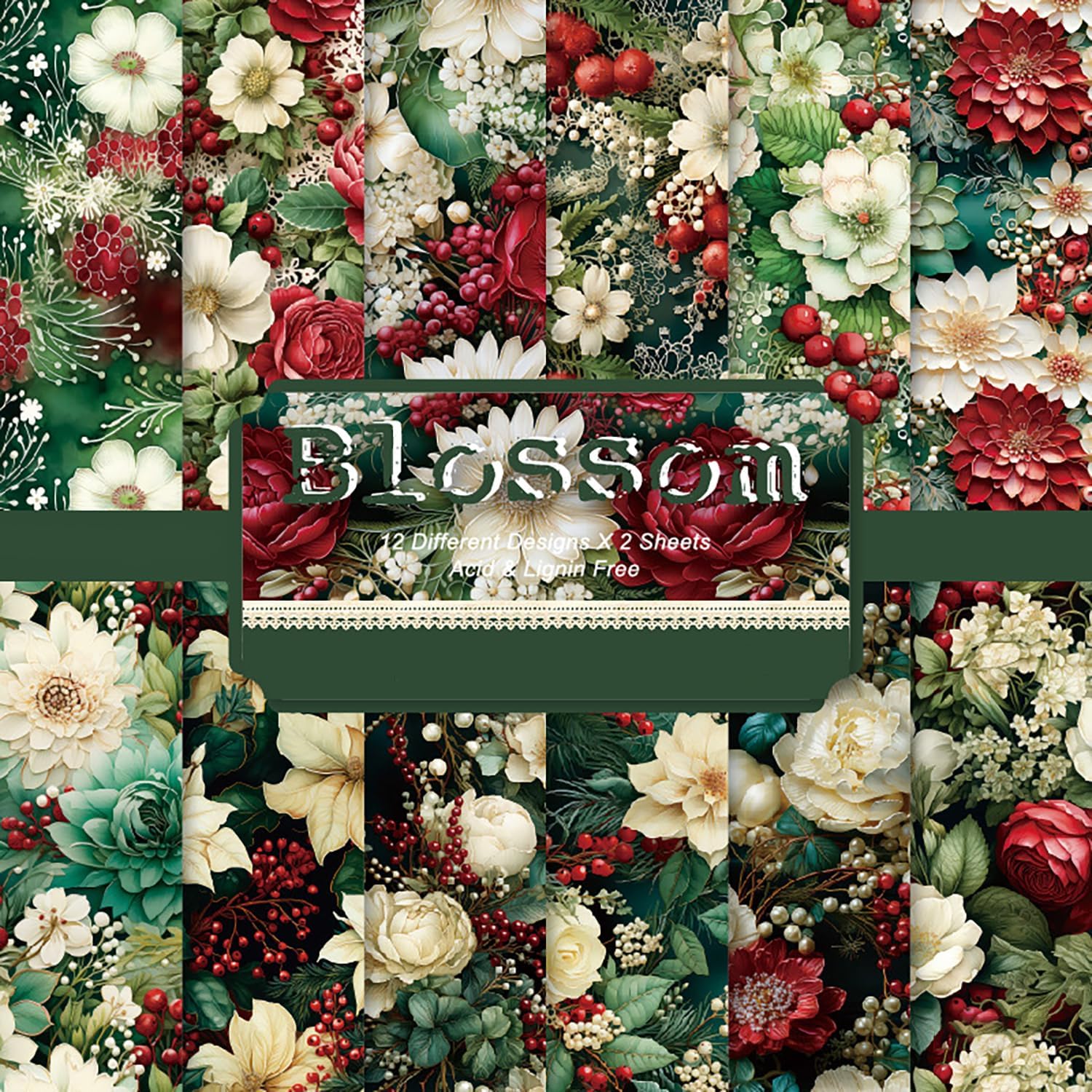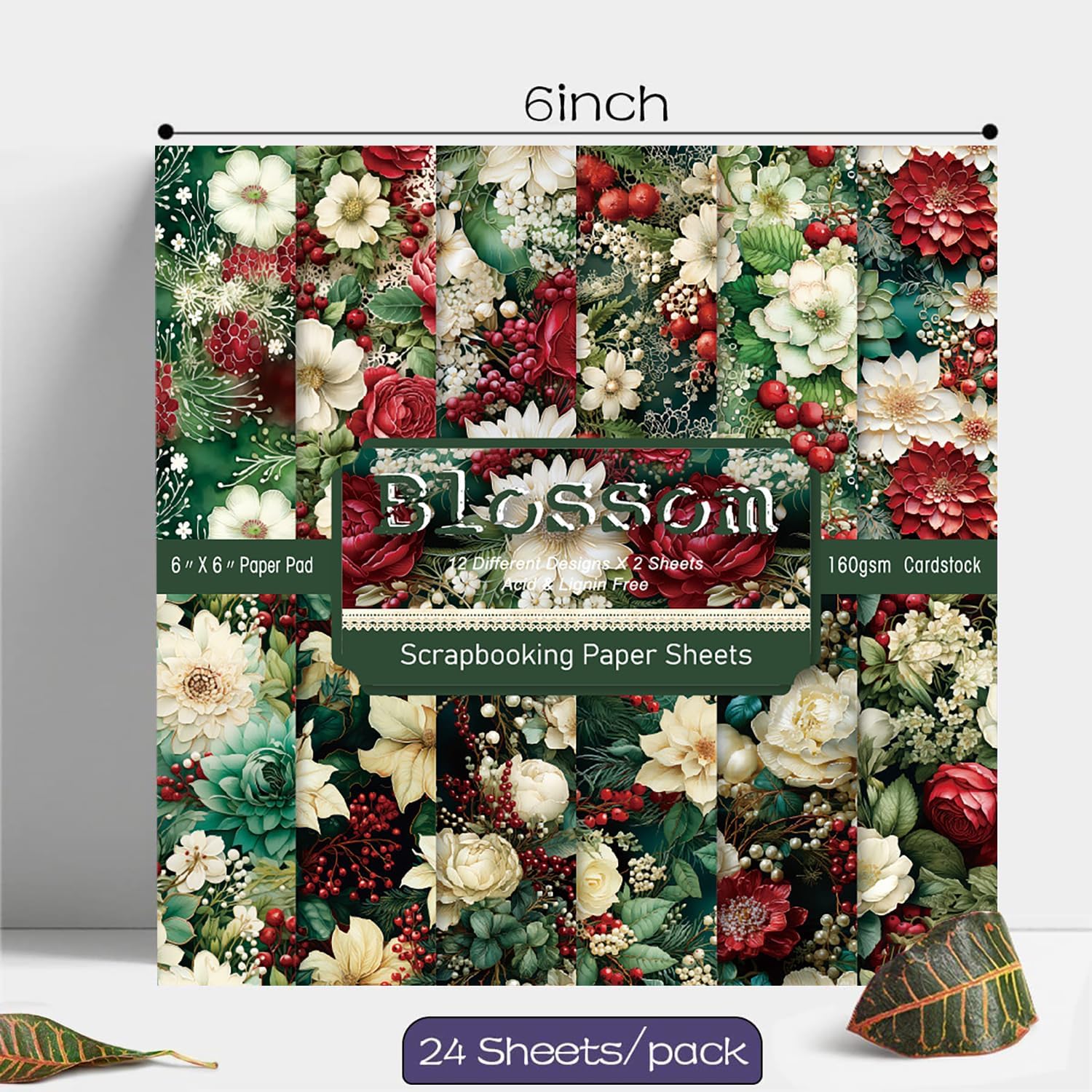 YASMEN Single-Sided Scrapbook Paper Pad - 6x6 Flower Cardstock Paper Pad Pads for Card Making, Scrapbooking, Greeting Cards, Junk Journal, Planners, Art Collage - 24 sheets