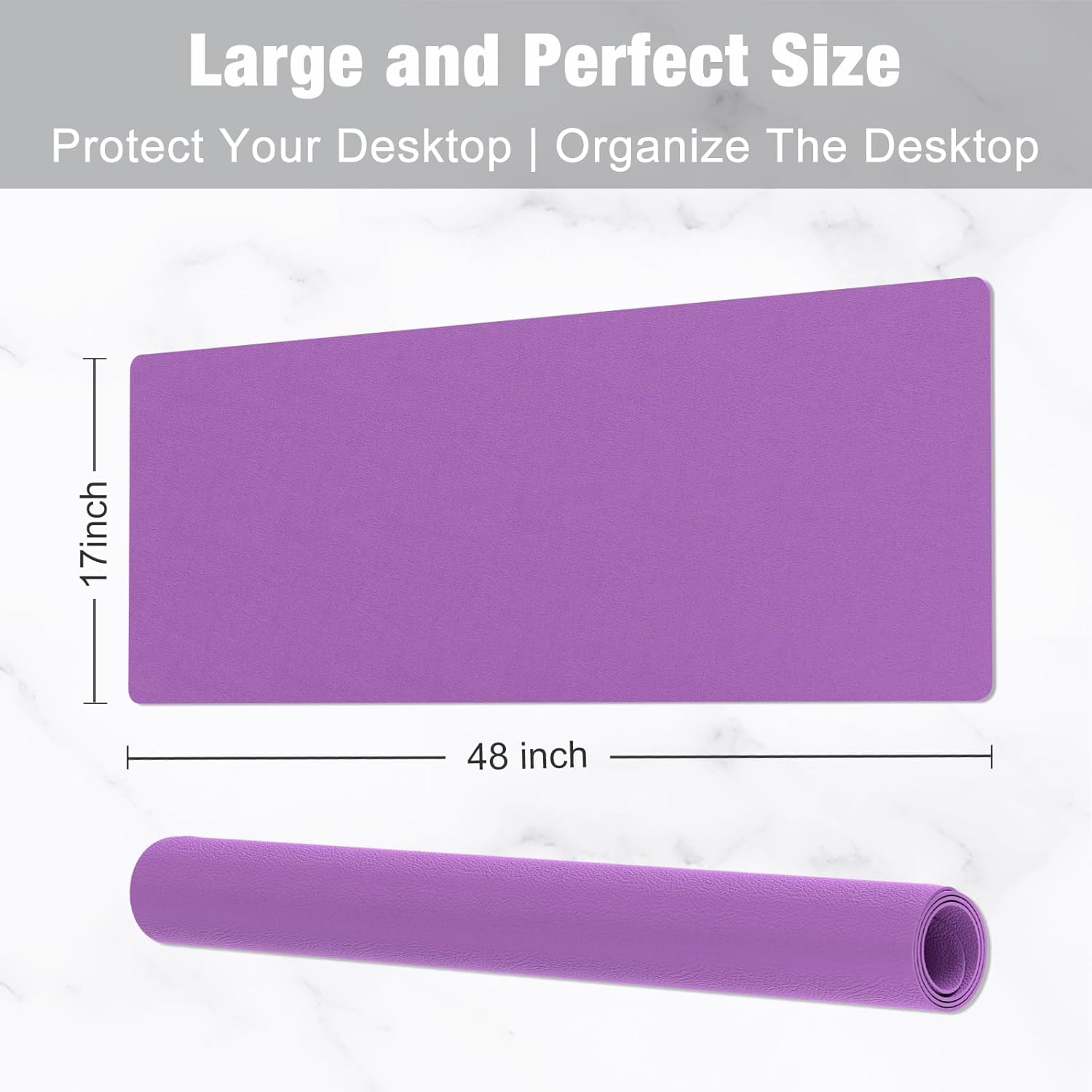Hsurbtra Desk Pad, 48" x 17" PU Leather Desk Mat, XXXL Extended Mouse Pad, Waterproof Desktop Blotter Protector, Non-Slip Ultra Thin Large Laptop Keyboard Writing Mat for Office Home, Purple