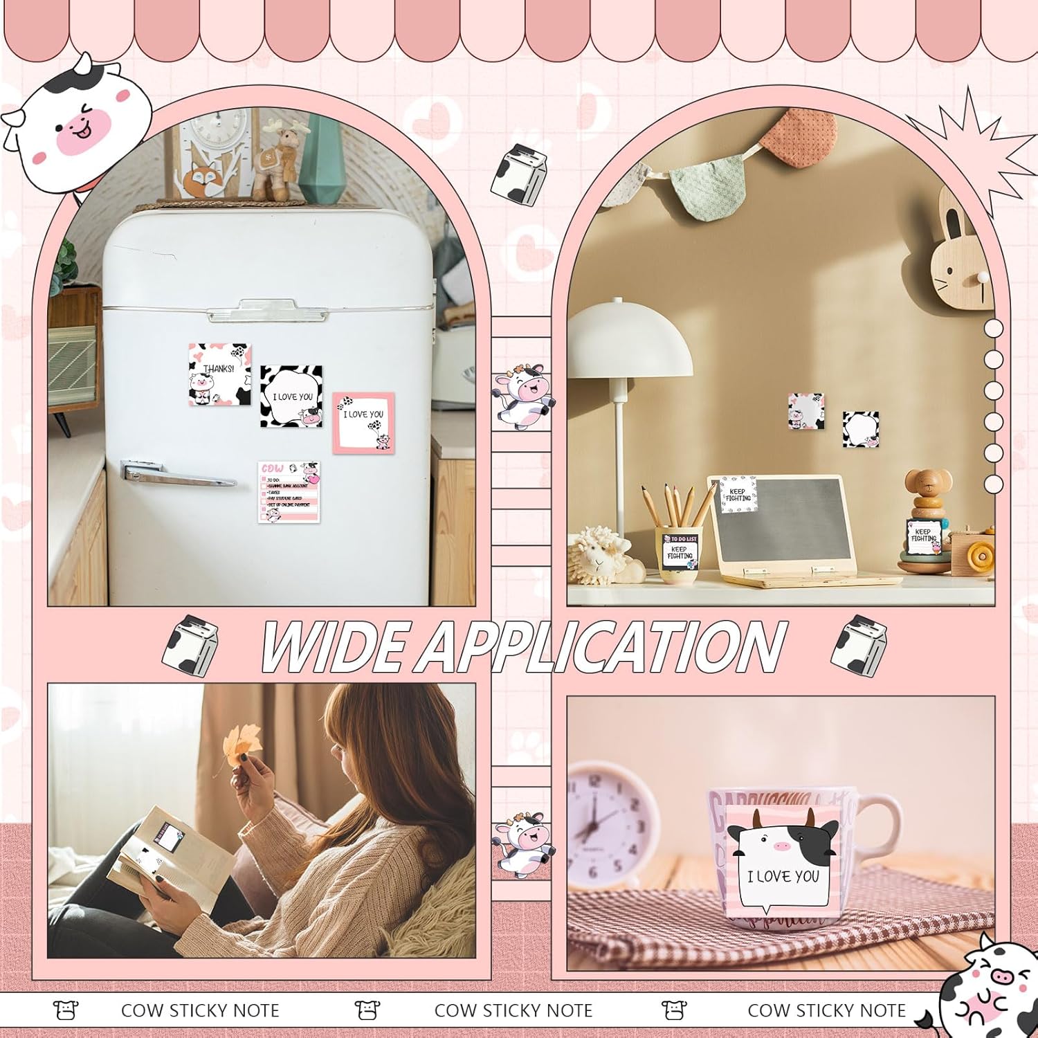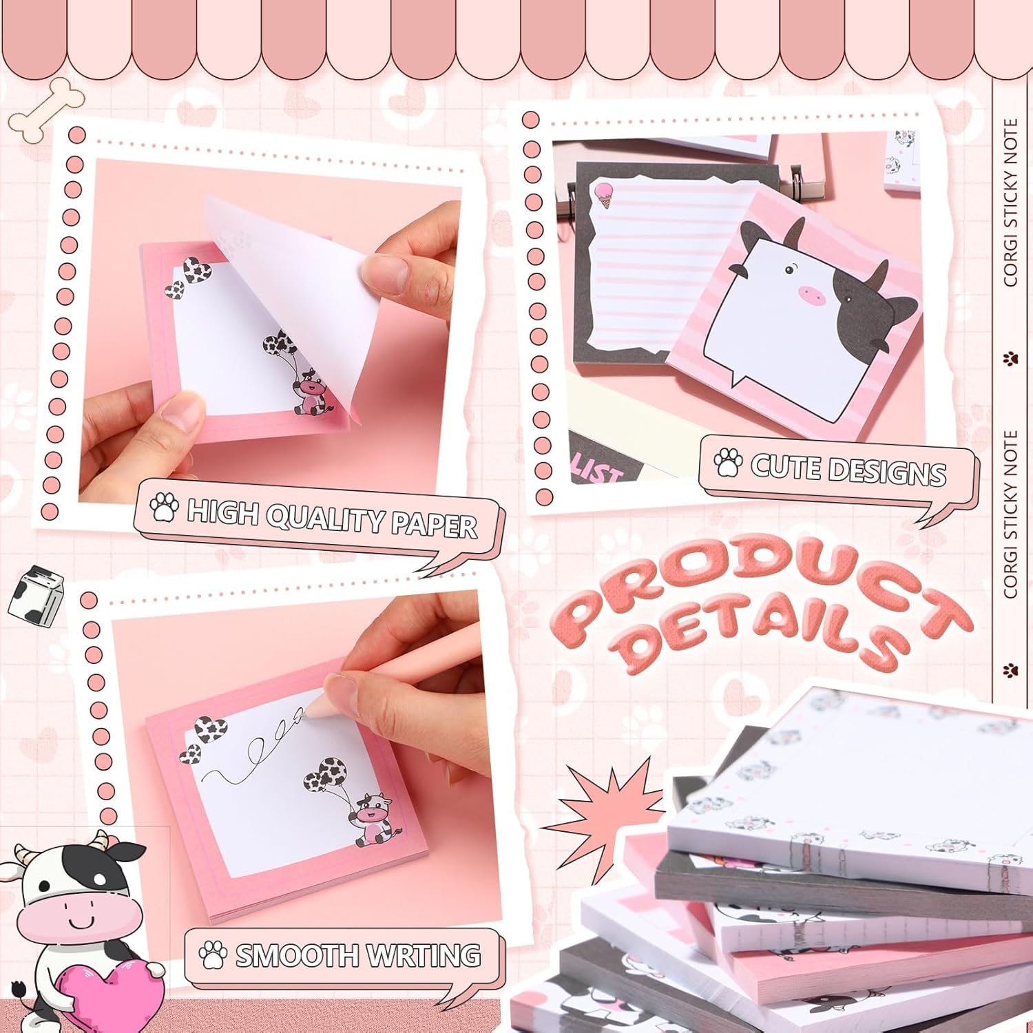 9 Pads Cow Sticky Notes 3x3 Inch Cute Self Stick Notepads Notes Adhesive Memo Pad Office Decor Gifts for Students School Teacher Meeting Office Supplies