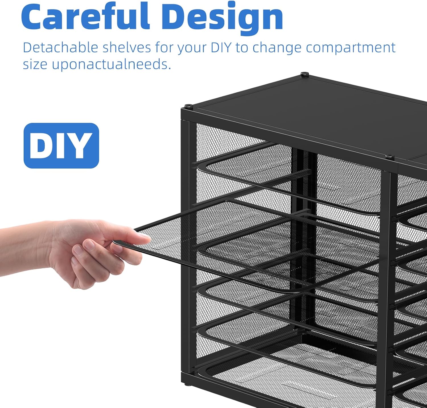 - Personalized Configuration: The file sorter adopts removable design for its internal horizontal shelves to store large-sized documents or office supplies. A slight pull adjusts the compartment size to hold all and frees you from clutter in your room