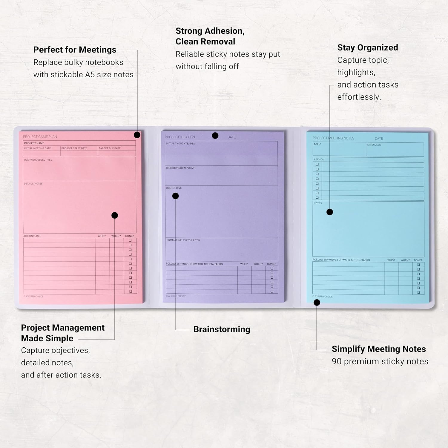 Meeting Notebook for Work & Project Planner Kit for Men and Women – 90 Large Sticky Notes for Work Organization, Project Management, Business Professionals & Work Planners