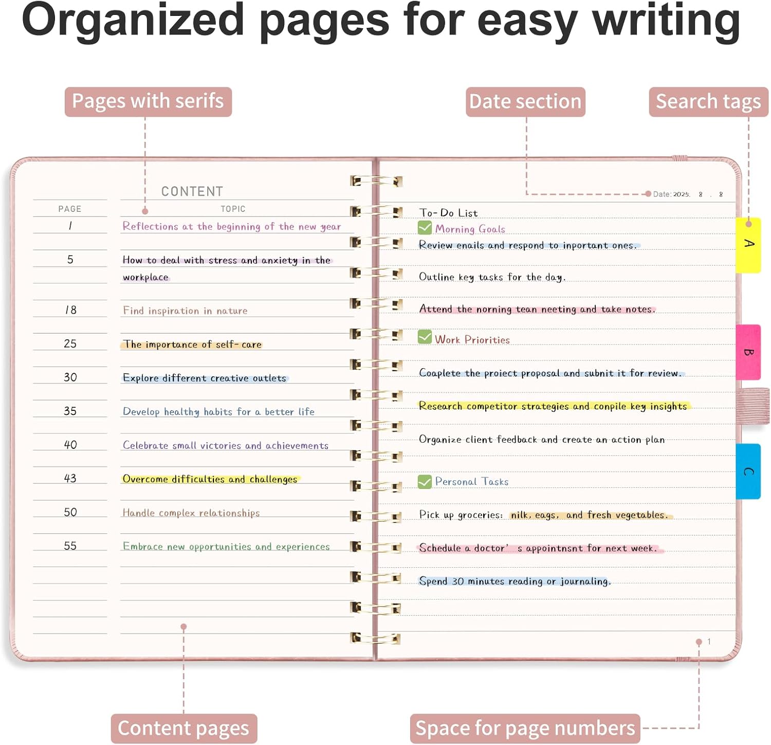 - ORGANIZED AND PRACTICAL NOTEBOOK: Our lined spiral notebook features 110 numbered pages and 4-page blank table of contents. In a large A4 size 8.5" x 11", providing ample writing space while remaining lightweight and easy to carry