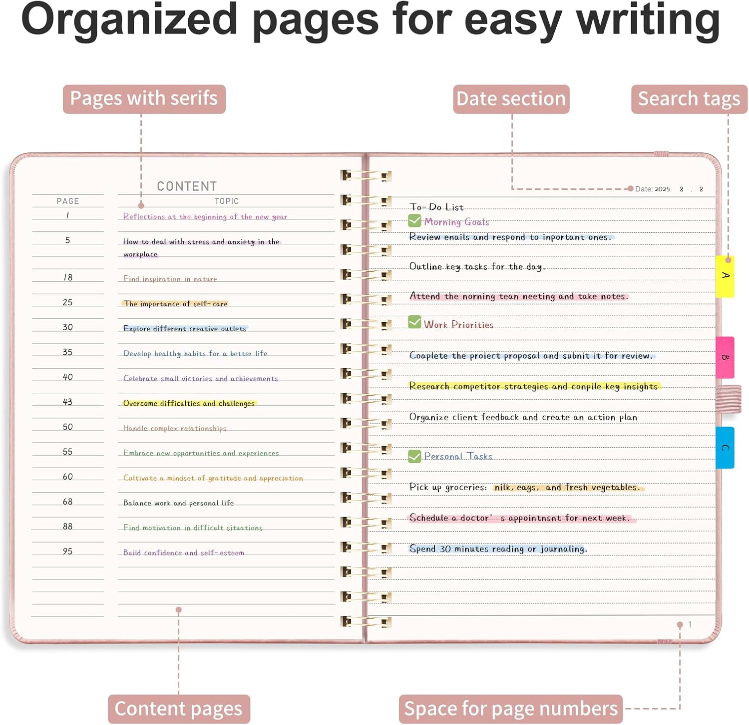- ORGANIZED AND PRACTICAL NOTEBOOK: Our lined spiral notebook features 140 numbered pages and 4-page blank table of contents. In a large B5 size 7.6" × 10", providing ample writing space while remaining lightweight and easy to carry