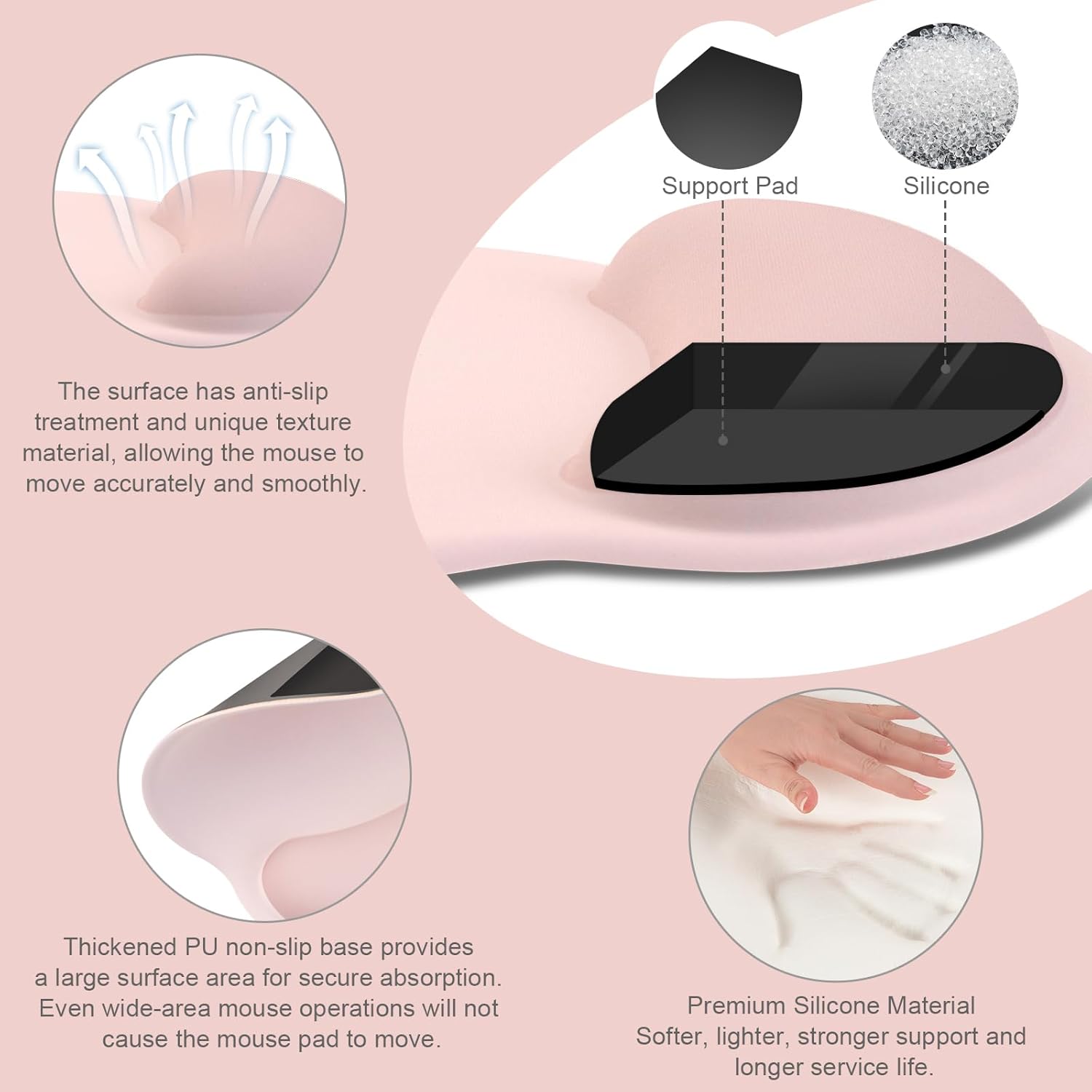 - This mouse pad with wrist rest is ergonomically designed with breathable neoprene cloth and silicone lining. It's soft with a slow rebound, offering exceptional comfort and support. The silicone-lined mouse pad is its superior non-slip grip, ensuring stable tracking on any desk surface during intense use. The keyboard wrist rest features a memory foam lining that offers plush support to alleviate wrist pressure and pain, keeping your wrists in a natural and comfortable position.