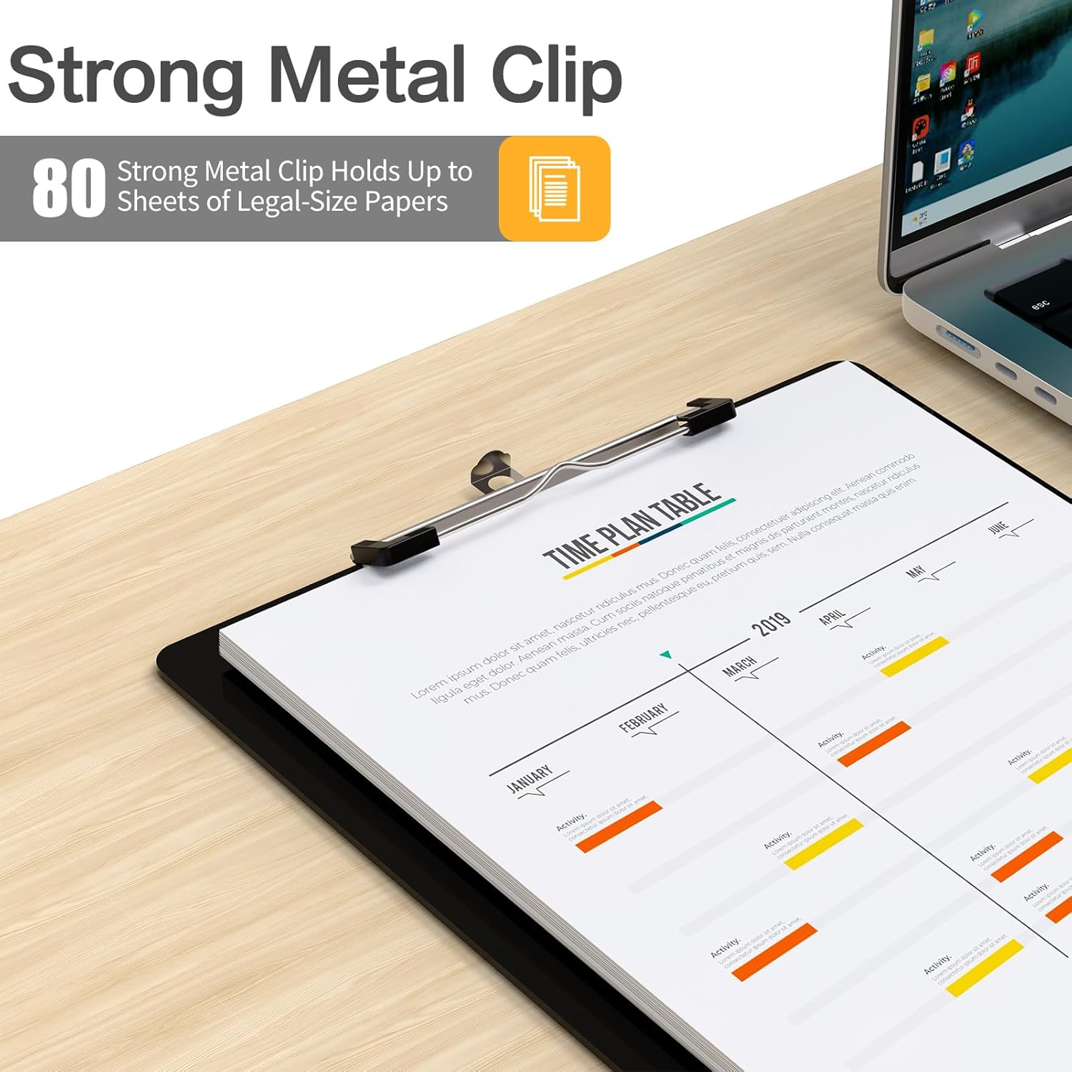 - Smooth Writing & Strong Clips: The clipboard made of sturdy plastic, Metal clip with plastic non-slip pads, Easily clamps 80 sheets of 8.5 x 14 in paper, Designed with hanging loop, easy to stow away when not needed