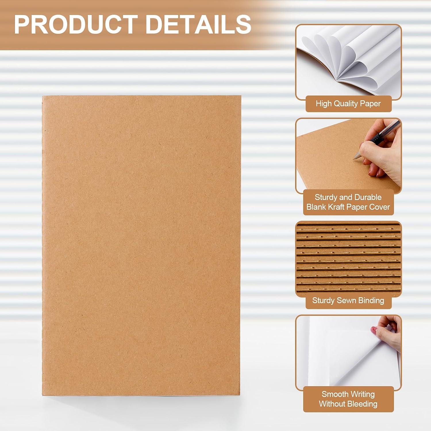 - PACKAGE INCLUDED: You will receive 60pcs of A5 blank kraft notebooks 8.3x5.5 inch, each containing 30 sheets/60 pages, 80gsm ; Enough for your daily use, very suitable for business, life, study, use them to make plans and draw some important things.
