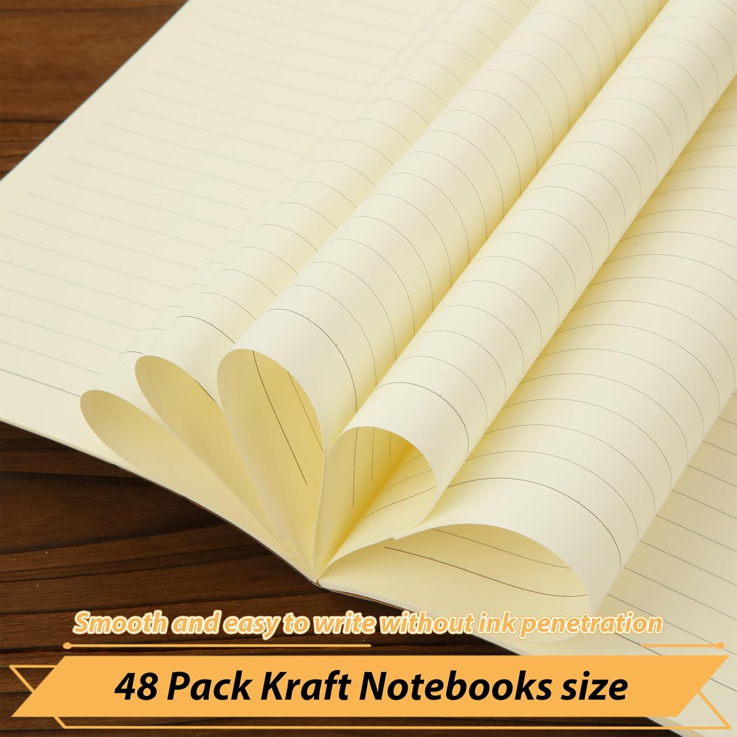 MIVIDE 48 Pack A5 Kraft Notebooks, Colourful Spine Lined Journal Bulk Pack 8.3 x 5.5 inch Notebooks 60 Pages, Travel Notebooks for Writing, Making Plans, School Office Supplies