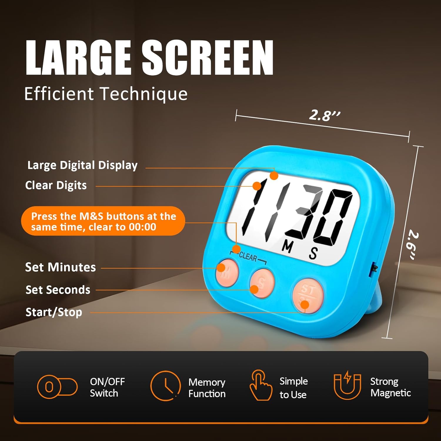 • 12 pack digital kitchen timers with large display and 3 buttones, super easy to read and set up