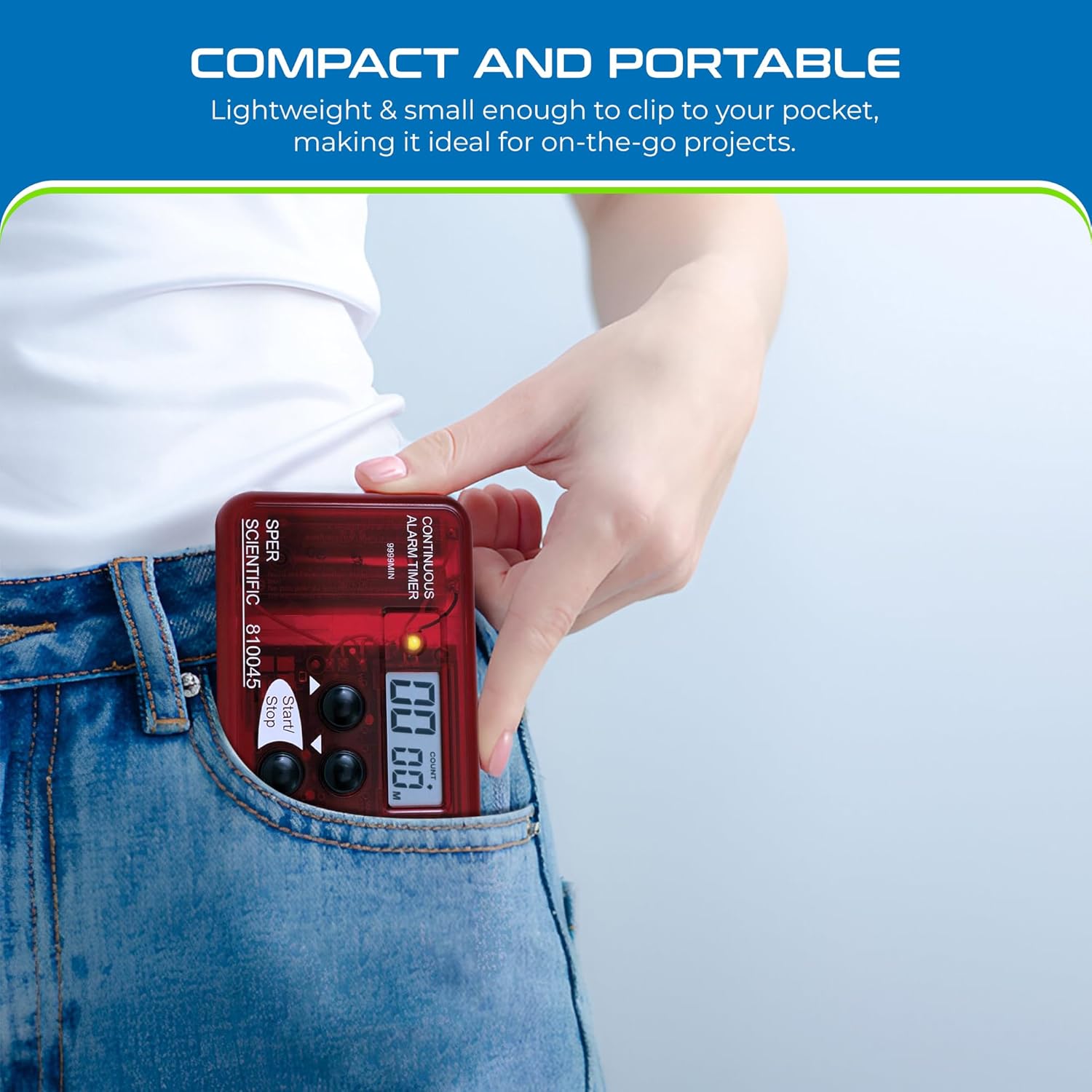 Sper Scientific Continuous Alarm Timer with Count Up Count Down & Visual Indicator 810045 - Bright LED Alarm & 9999-Minute Range - Portable Design for Cooking, Experiments, Fitness & More - 4 pc