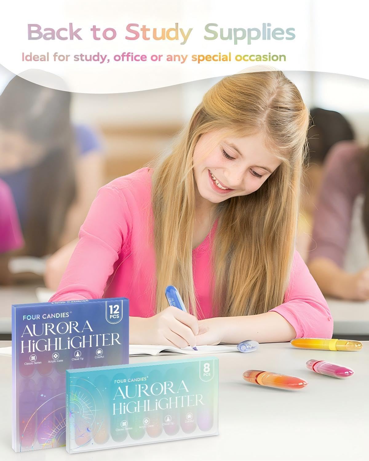 Four Candies 12 Pcs Highlighters Assorted Colors, Cute Pastel Highlighter Set, Dry Quickly, Soft Chisel Tip, No Bleed Bible Highlighter, Aesthetic Highlighters fo Purple Christmas Gifts