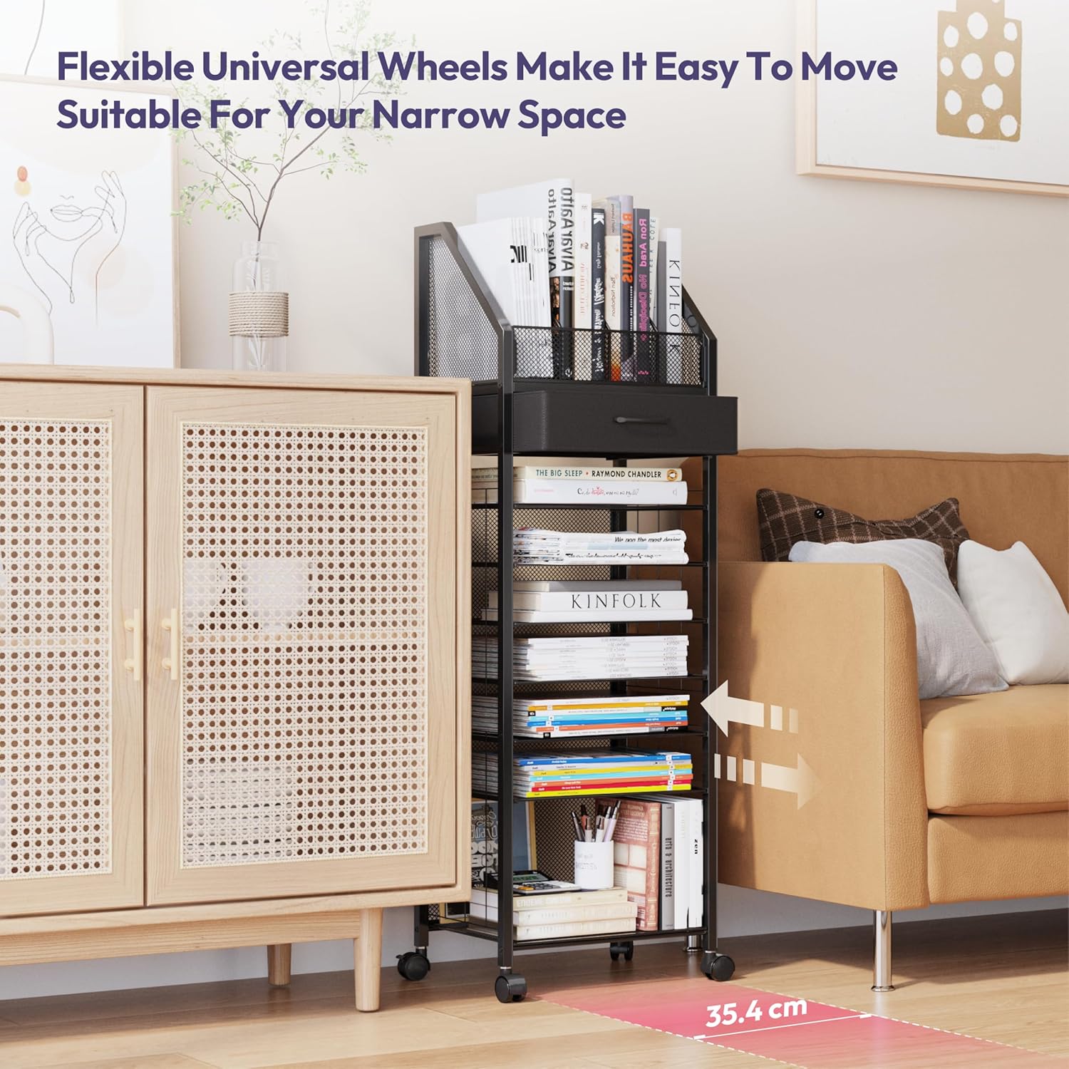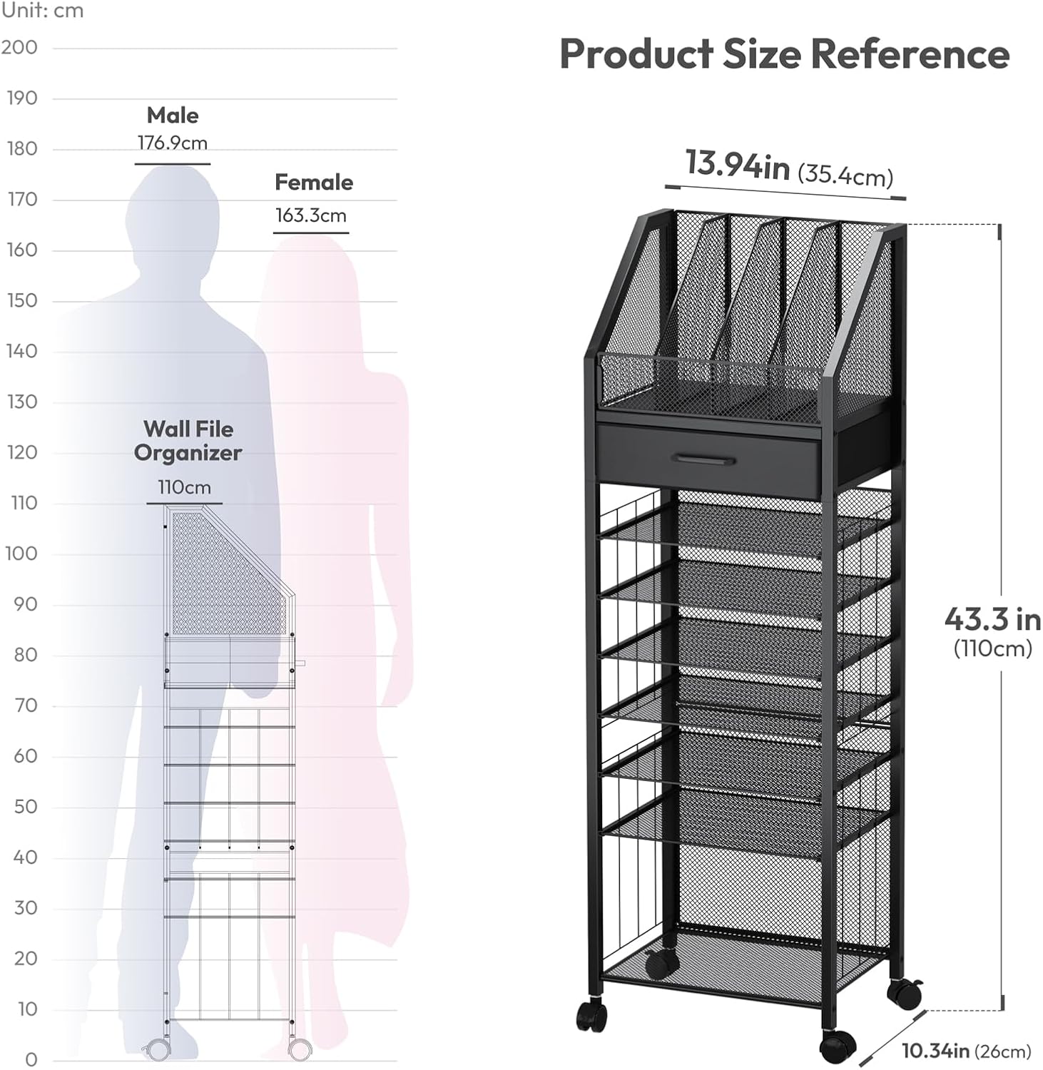 - [Sleek and Modern Design]: The black metal finish complements any décor. Use it as a paper file organizer, rolling bookshelf, binder rack, or stylish file folder holder to enhance your workspace