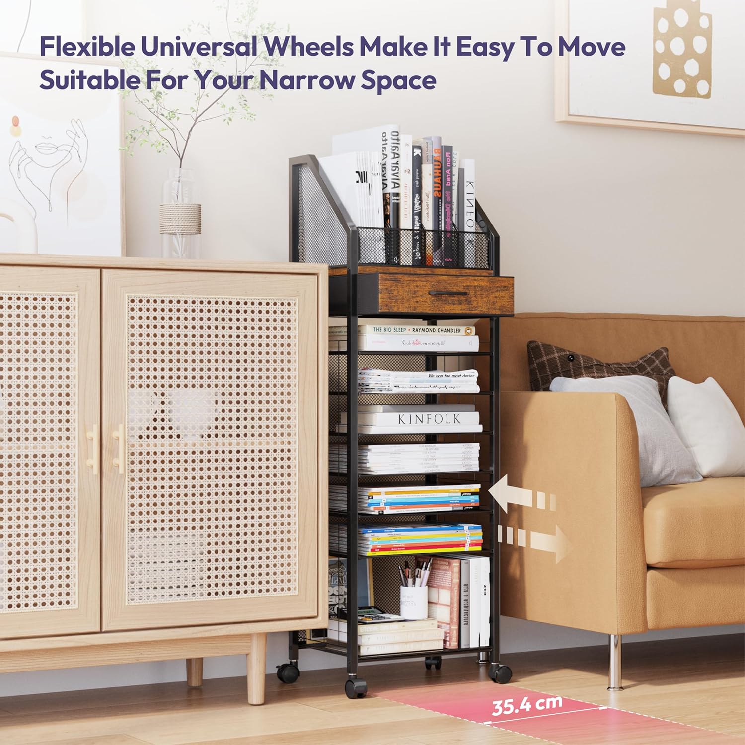 - [Sleek and Modern Design]: The black metal finish complements any décor. Use it as a paper file organizer, rolling bookshelf, binder rack, or stylish file folder holder to enhance your workspace