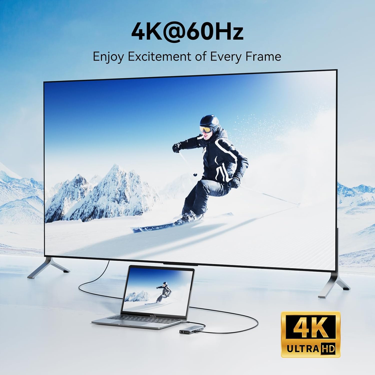 - 【Triple Display and 4K Ultra HD】: This usb c docking station will help you easily achieve dual-monitor and triple-monitor display to make your work/life more efficient; Single use HDMI up to 4K 60Hz under DP1.4 source; When connecting dual hdmi at the same time, the resolution support up to 4K@60hz and 4K@30hz; When triple display under DP1.4 source. resolution support up to 1080P when external 3 monitors are connected; (Note: Due to OS limitation, MacOs laptops only support SST mode, so all external monitor screens are the same)