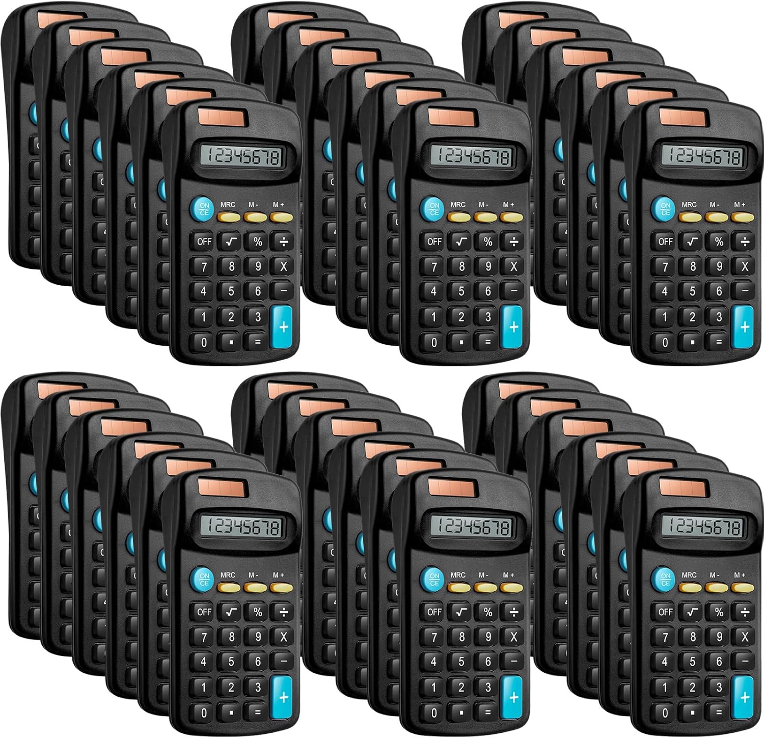 36 Packs Pocket Size Mini Black Calculator Basic Calculators for Handheld Angled Students 8 Digit Display Solar Battery Dual Power Small Calculator for Students Kids Home Office
