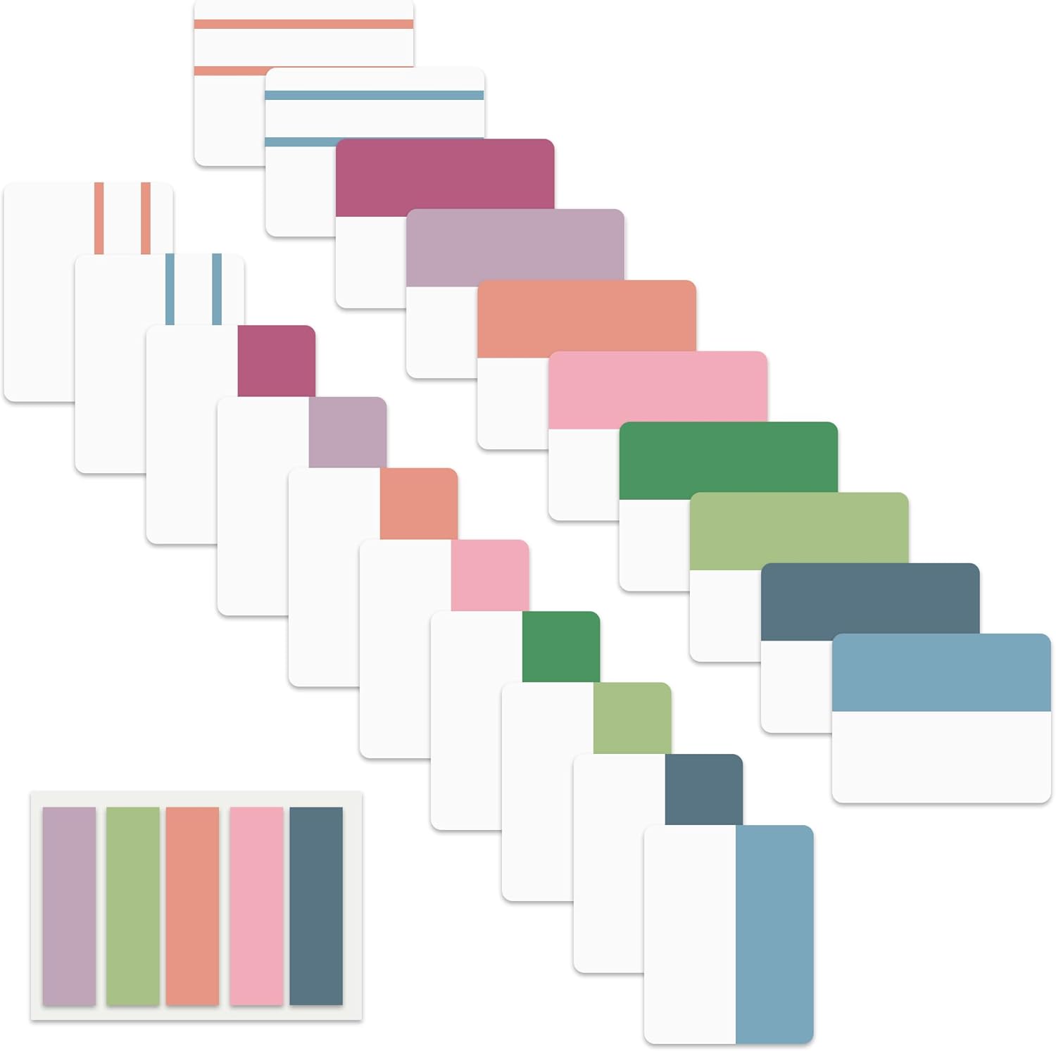 • Sticky Tabs: 500 pieces 21 sets in total, 400 pieces 2 inch sticky tabs in 20 sets with different pastle colors,100 pieces 0.5 in tabs in 1sets, 20 pieces each color