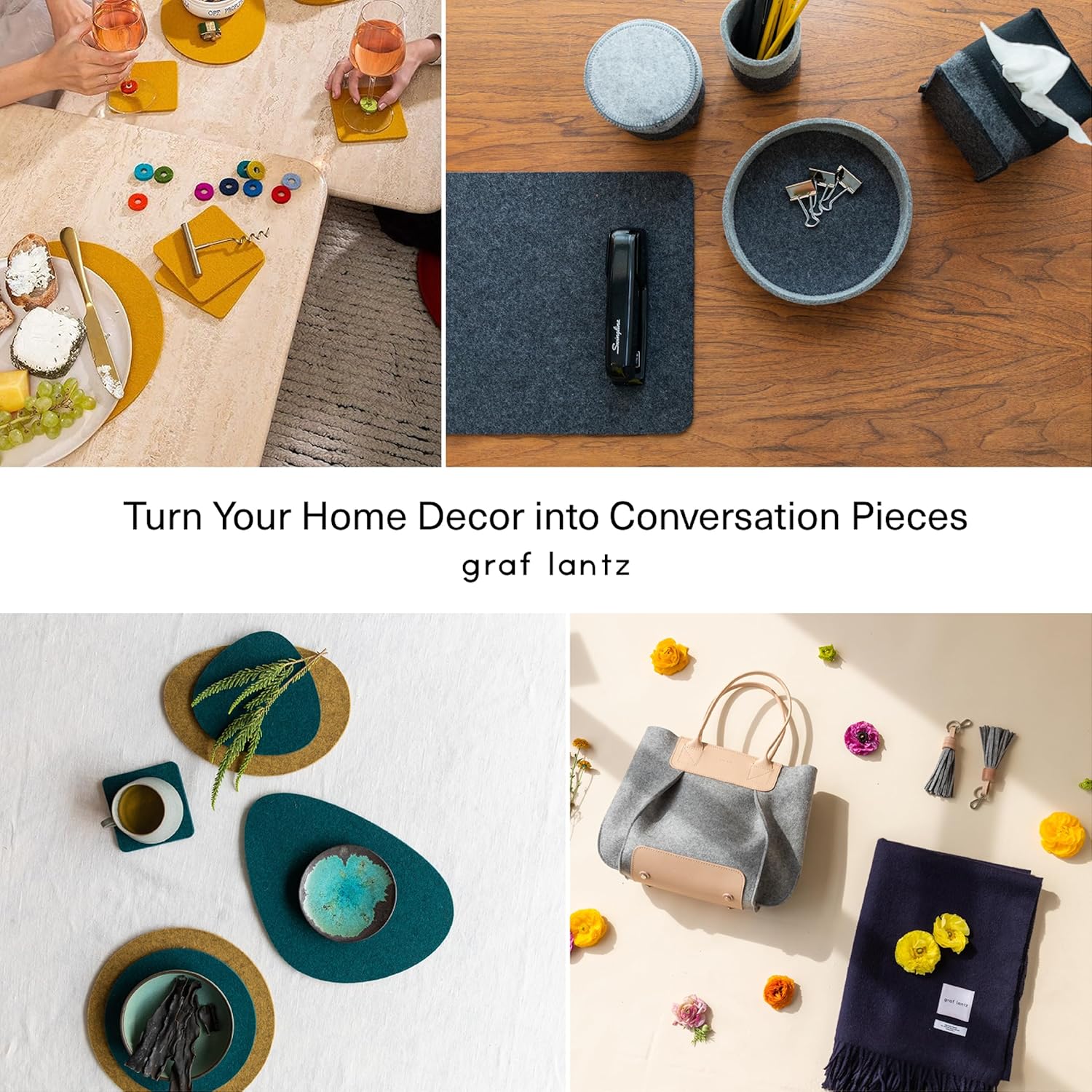 Graf Lantz - Bierfilzl Merino Wool Square Coasters Set of 4 - Love (4"x4"x5mm) - Absorbs 30% of Weight - Natural German Wool - Heat Resistant, Sustainable, Reusable - Home Decor, Coffee Table Decor