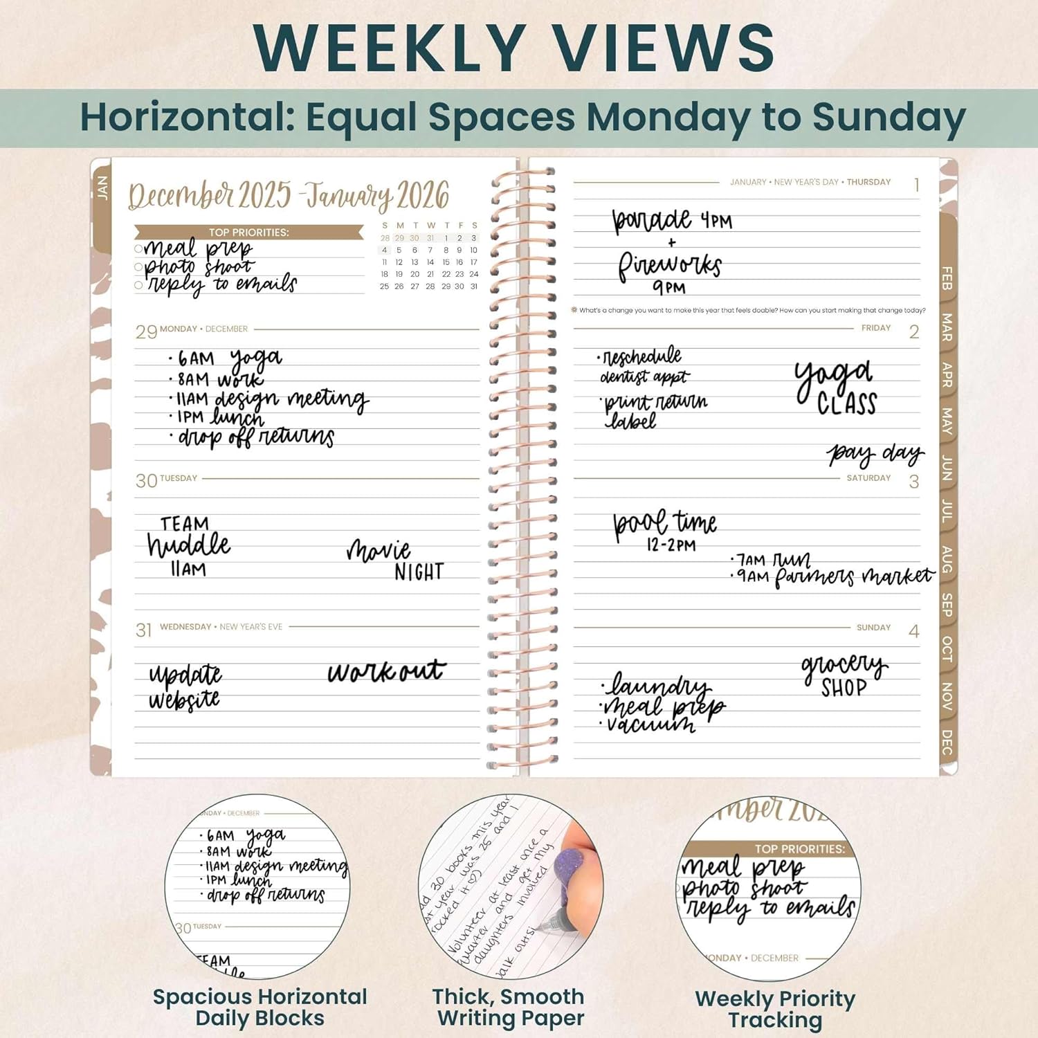 - WEEKLY & MONTHLY LAYOUT: This day planner features two-page monthly planner spreads and horizontal weekly layouts, running from January 2026 through December 2026. Perfect for tracking your tasks and appointments.
