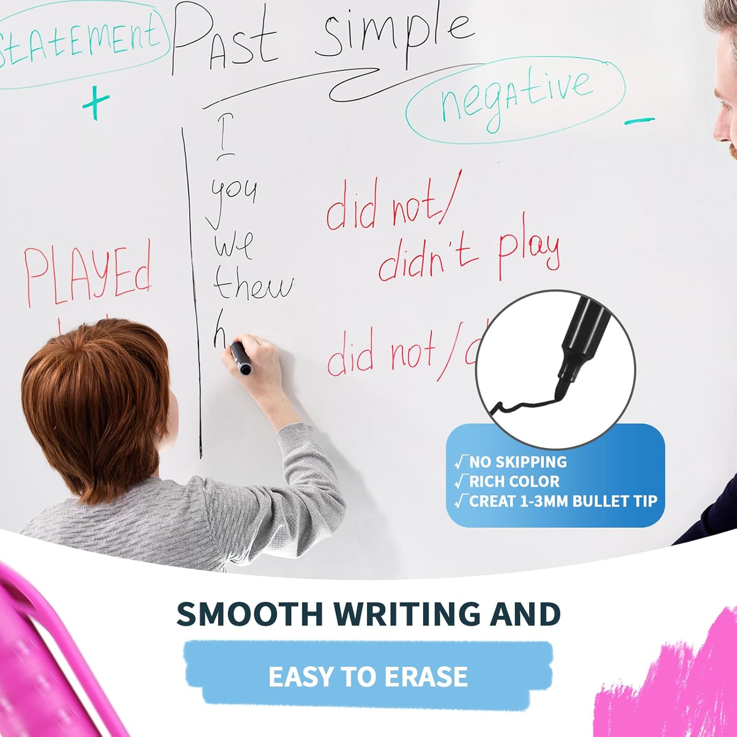 - EASY ERASING: Marks wipe away cleanly from whiteboard surfaces without leaving residue or ghost marks behind
